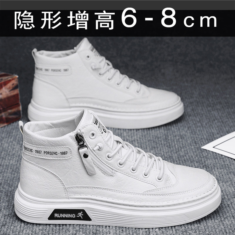 白色高帮鞋潮男刺绣板鞋厚底网红内增高男士休闲鞋中帮男鞋小白鞋