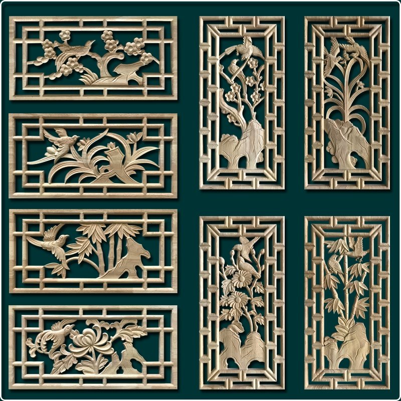 东阳木雕四季梅兰竹菊喜字福字婚庆喜事花轿子装饰雕花片木质贴花