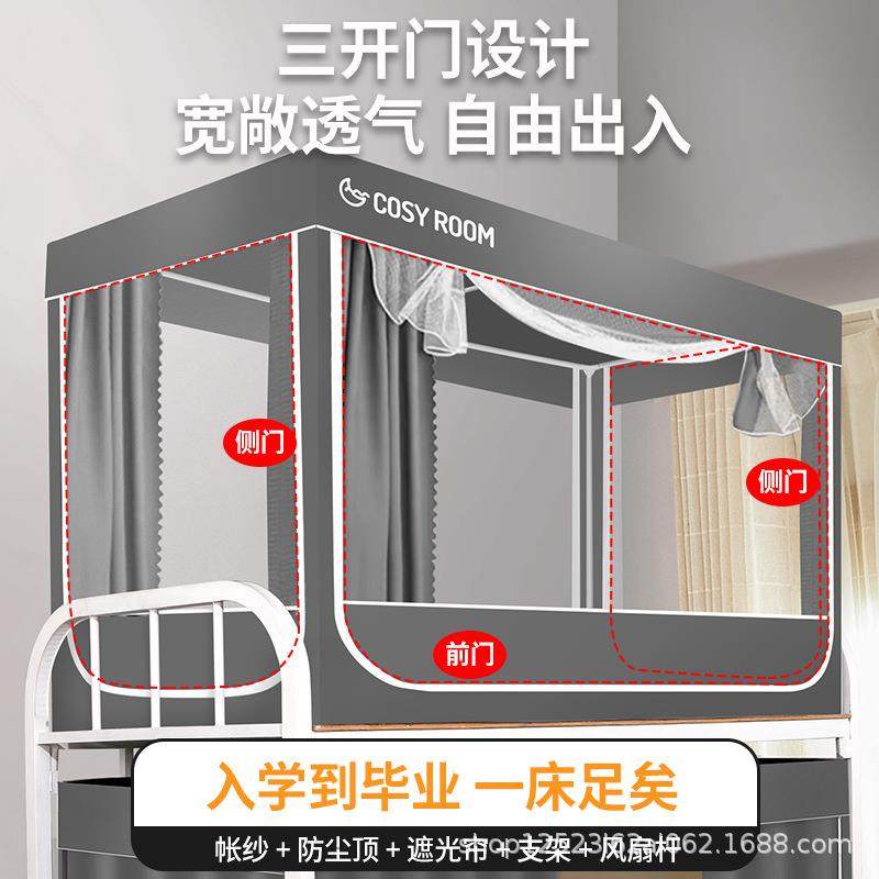 学生宿舍蚊帐上铺用遮光布侧开 门床帘一体式上下铺拉炼 炼 男生