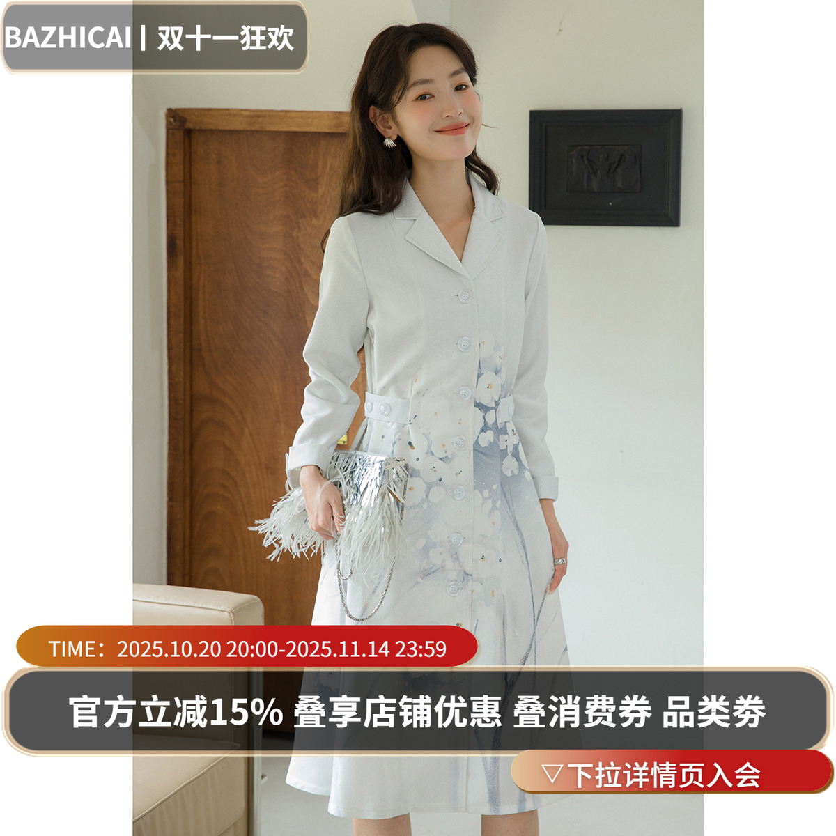 NEVA HU白色法式长袖衬衫连衣裙短款设计感收腰显瘦小个子短裙女
