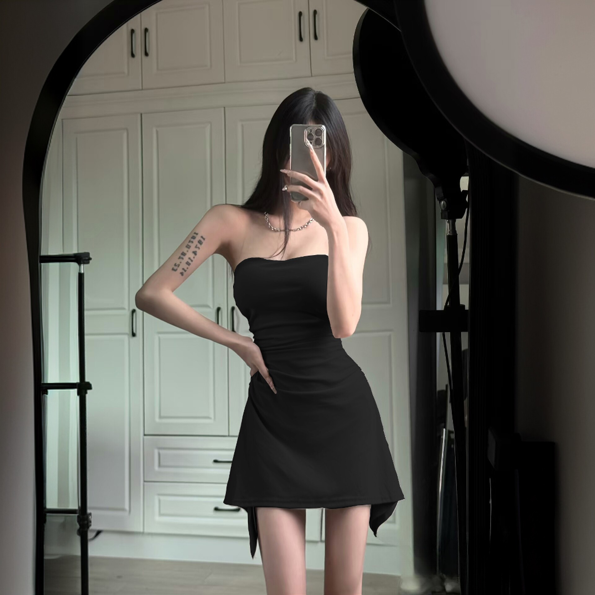 2025夏季新款抹胸连衣裙纯欲风性感辣妹黑色连衣裙夜店穿搭a字裙