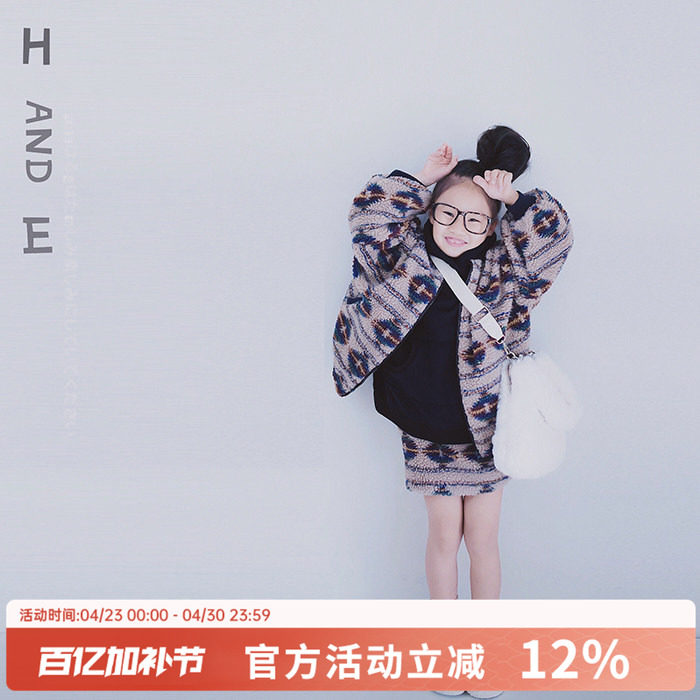 H AND E女童羊羔毛套装秋冬复古印花儿童中大童外装加厚加绒冬装
