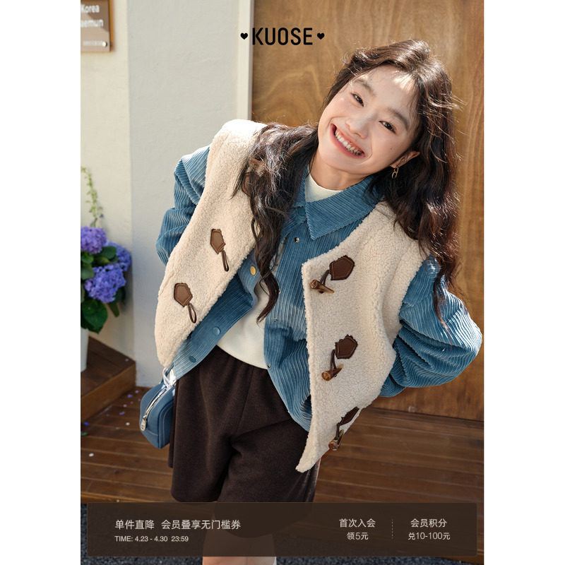 阔色衬衫型棉服仿羊羔毛马甲两件套装棉衣25秋冬季新款女上衣外套
