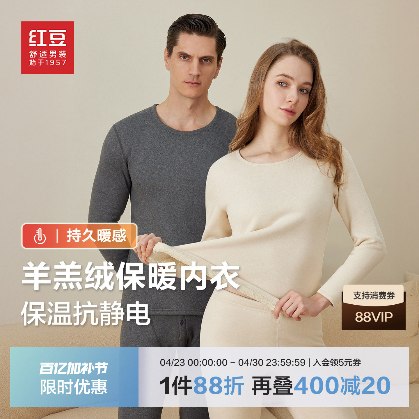 【含羊毛】红豆加厚羊羔绒保暖内衣套装加厚加绒冬男女款秋衣秋裤