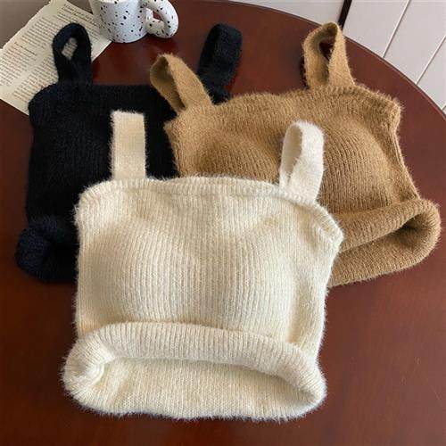纯欲甜辣水貂绒小吊带背心女性感抹胸无袖针织打底衫短款保暖上衣