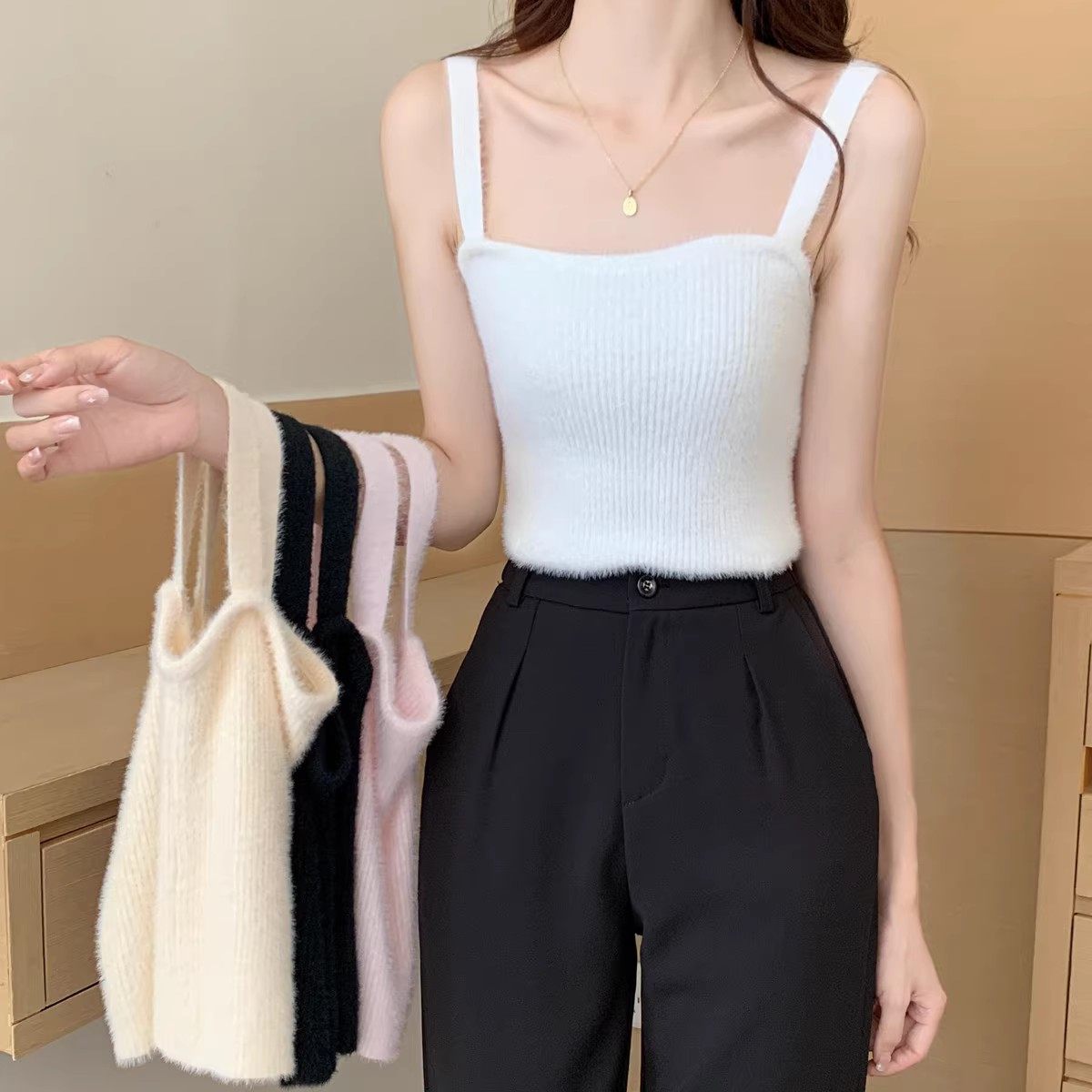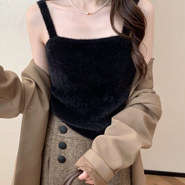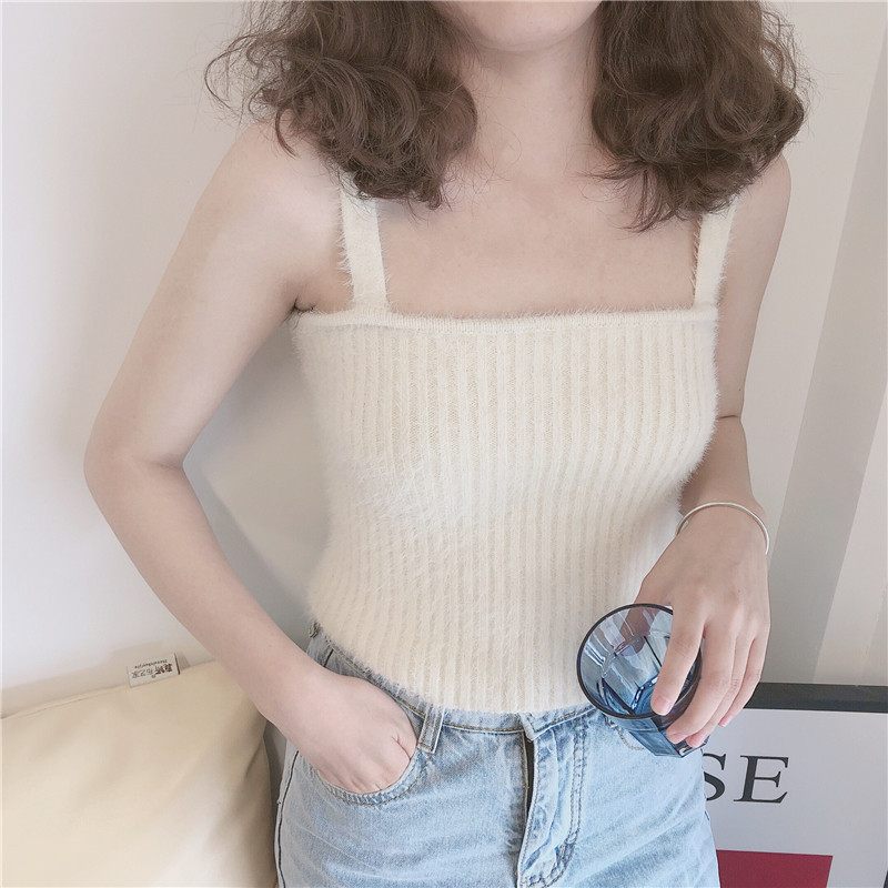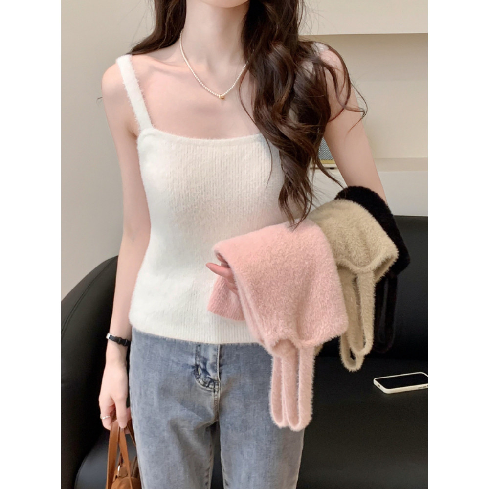 彷水貂毛绒小吊带女保暖内搭无袖背心外穿针织上衣软糯打底衫毛衣