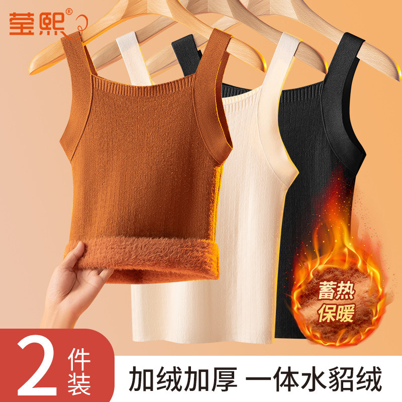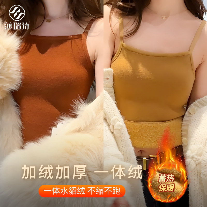 2025秋冬季新款吊带女加绒加厚一体水貂绒保暖背心收副乳打底内搭