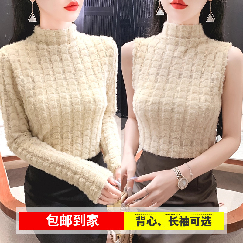 仿水貂绒针织吊带背心女秋冬半高领内搭打底衫纯欲辣妹性感露背衣