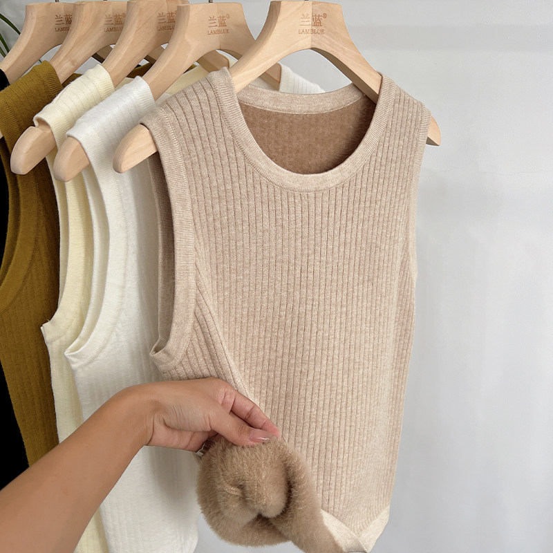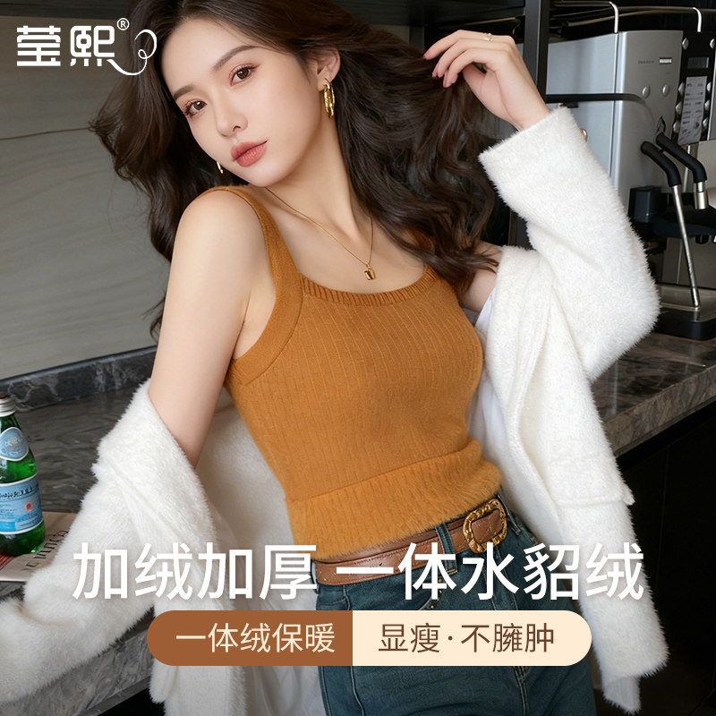 2025新款秋冬一体水貂绒加绒加厚保暖气质吊带背心女显瘦百搭上衣