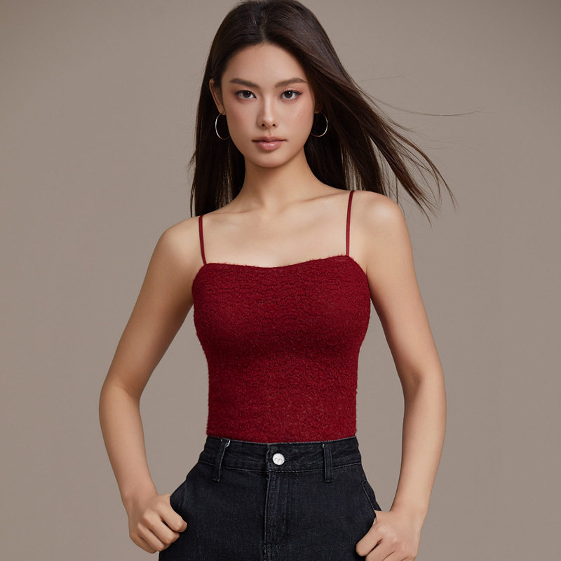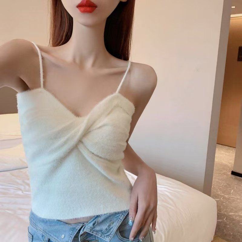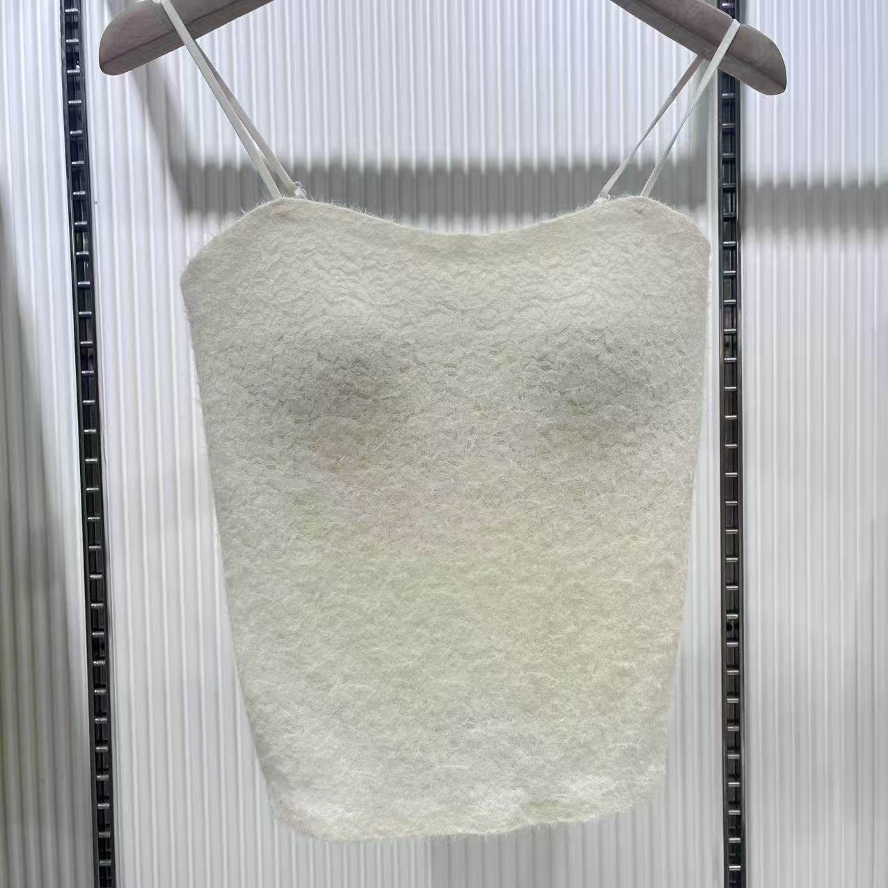 水貂毛绒吊带背心女内搭性感交叉抹胸亲肤柔软打底衫秋冬保暖上衣