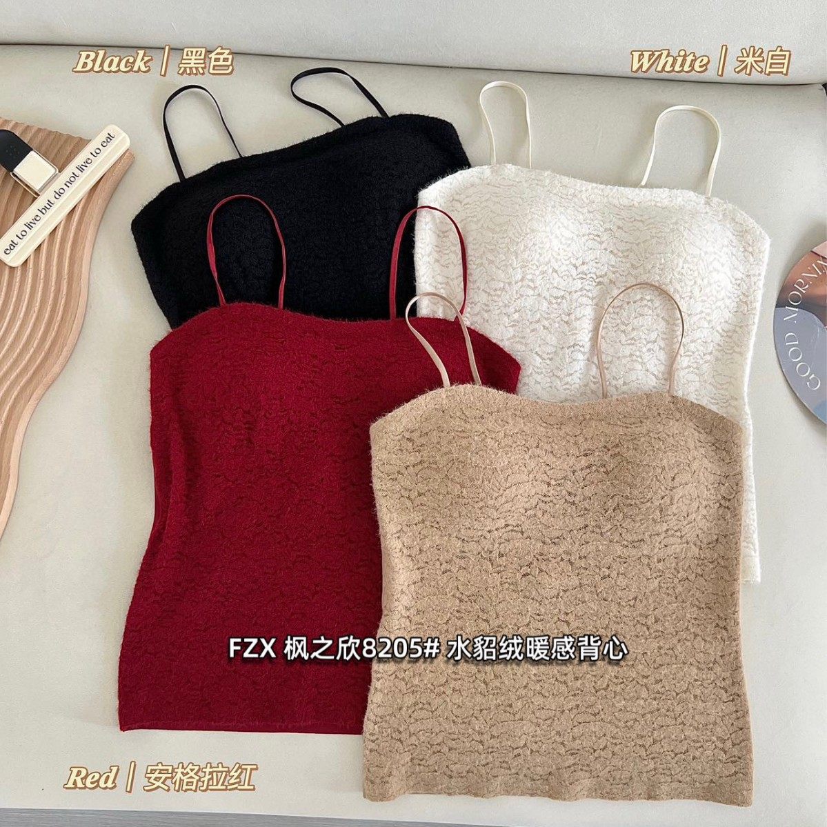 枫之欣8205秋冬时尚性感水貂绒磨毛吊带背心一体固定杯显瘦美背女