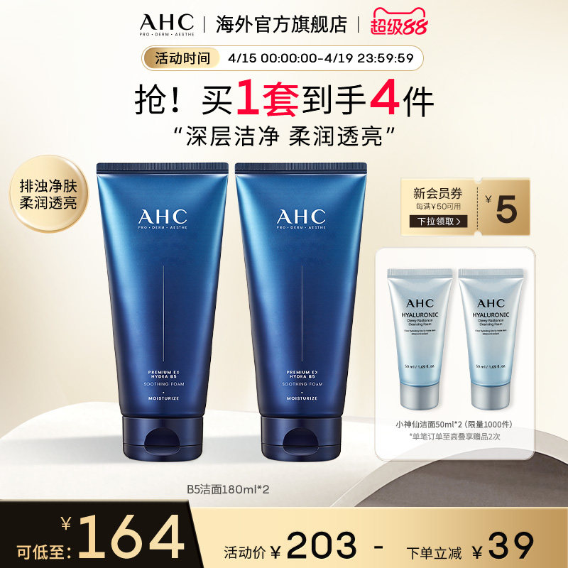 AHC洗面奶B5玻尿酸洁面乳女保湿舒缓男士氨基酸学生官方正品180ml