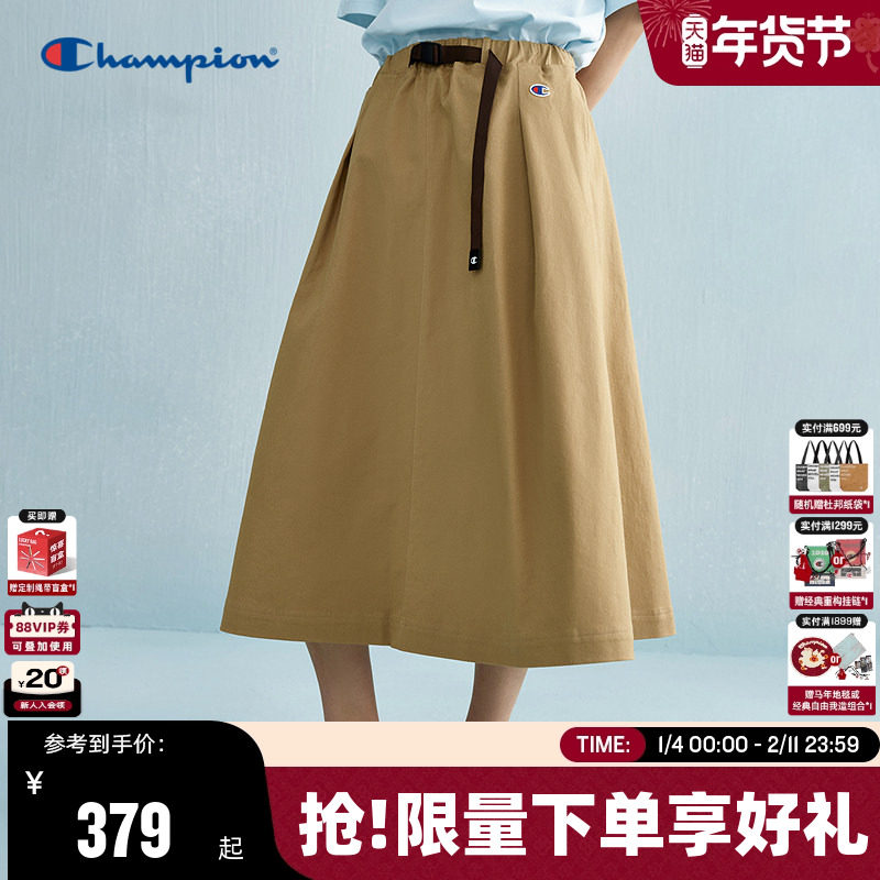 Champion冠军半身裙25夏季卡其a字秋季中长裙女美式风工装半裙