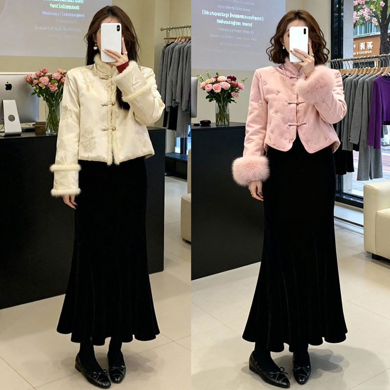 夏央2025秋冬新款金丝绒气质加绒长裙鱼尾松紧腰半身裙子女#7750