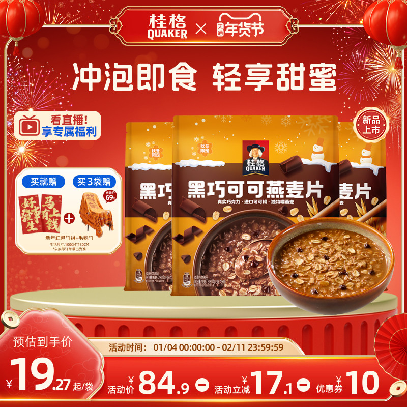 【新品】桂格黑巧可可燕麦片280g速溶冲饮麦片健康营养早餐代餐