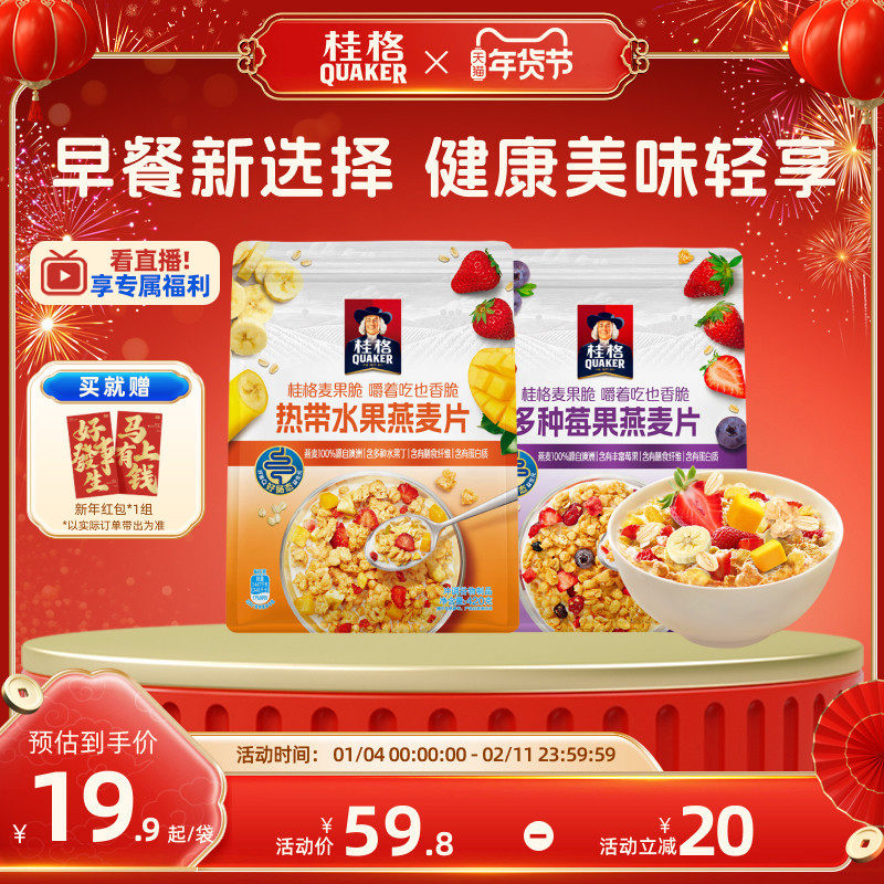 桂格水果坚果燕麦片谷物麦果脆420*2营养早餐燕麦饱腹冲饮麦片