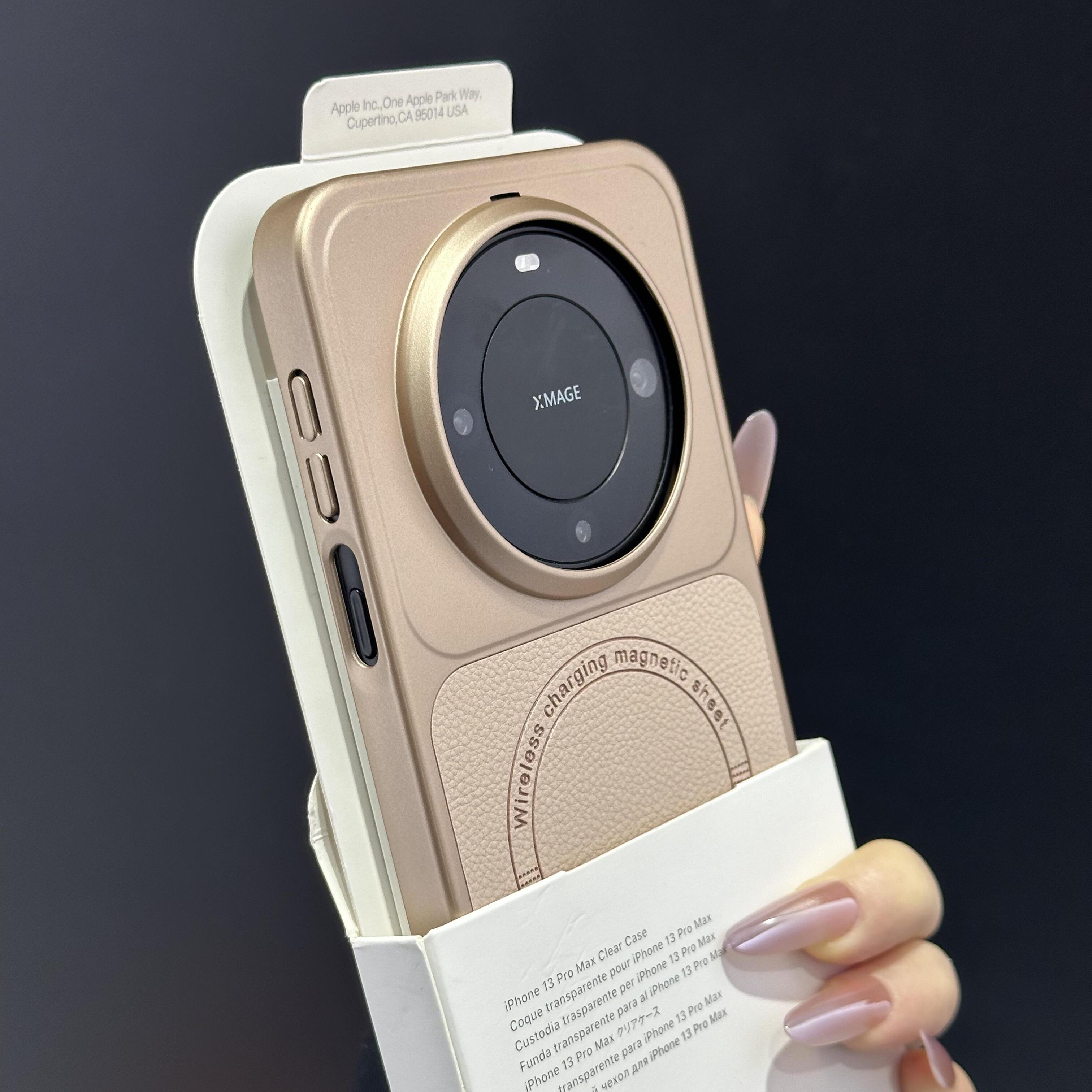 好看的金色轻奢电镀拼接荔枝纹适用华为mate80promax磁吸手机壳荣耀majic8新款vivoX300pro防摔OPPOfindx9硬