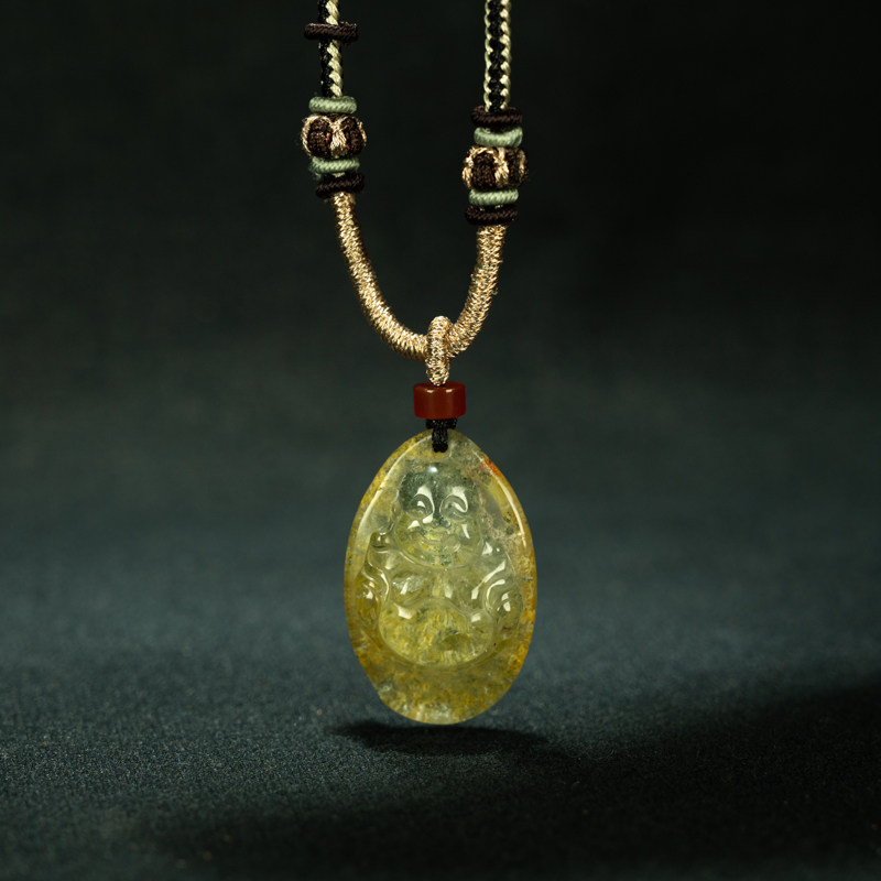 晶山角商城天然水晶绿幽灵如意佛吊坠 62×34×11mm40.4g