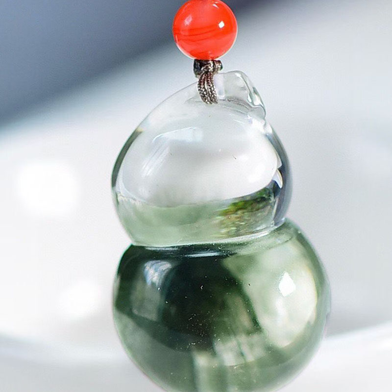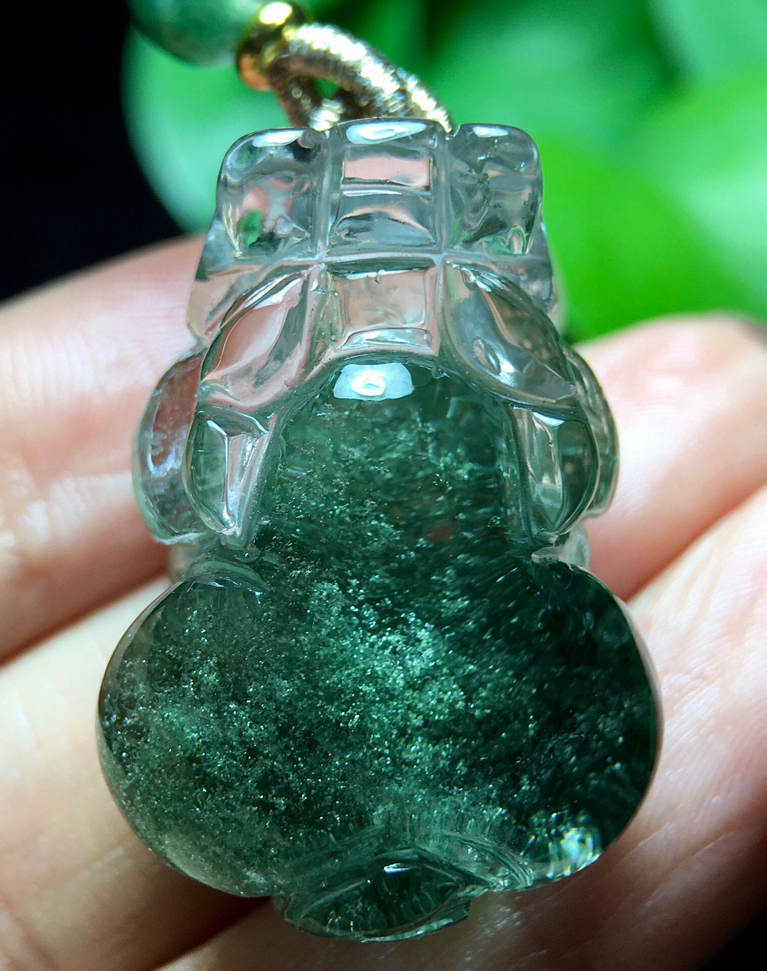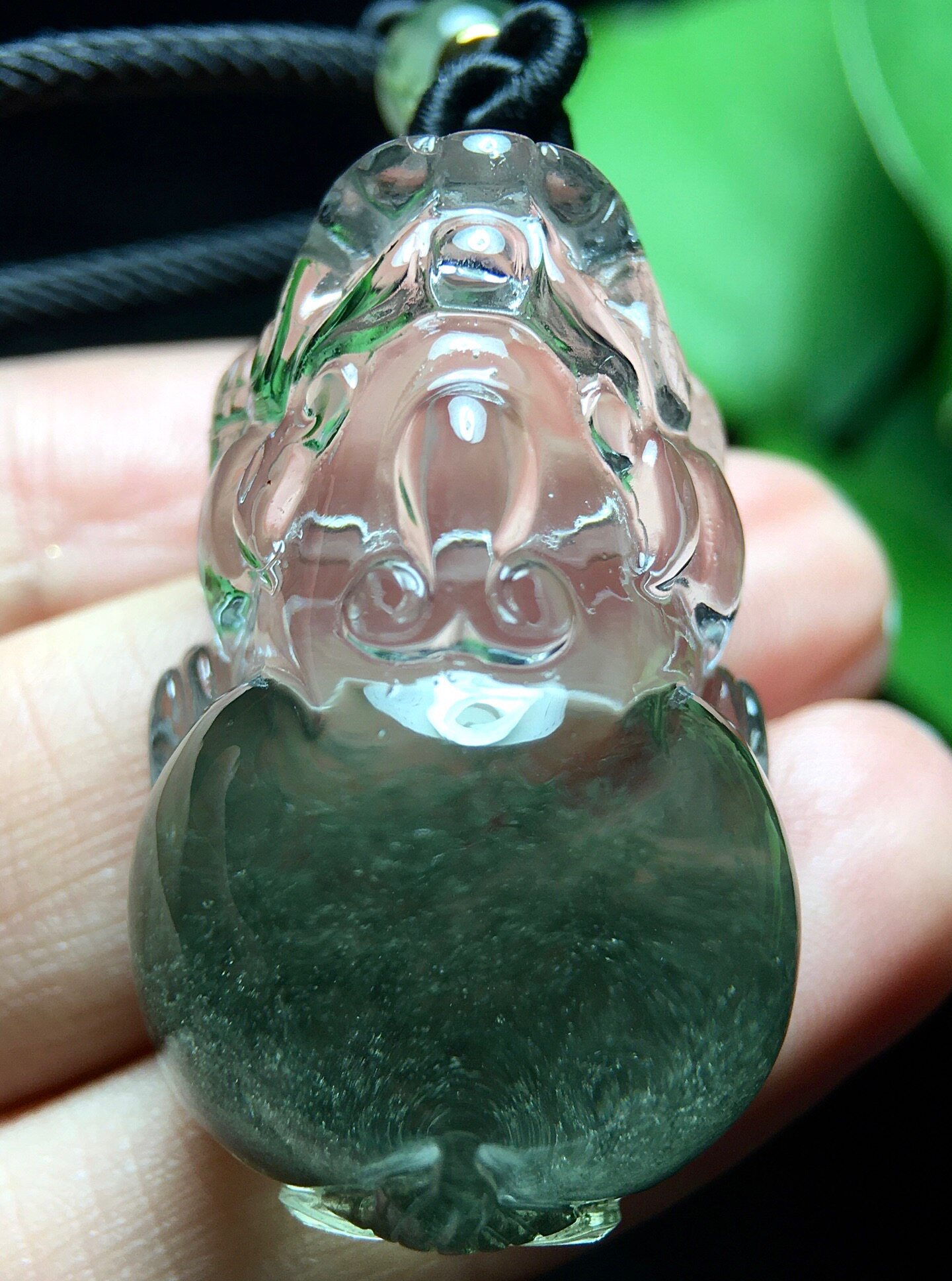 天然绿幽灵水晶葫芦吊坠千层山聚宝盆项链原石雕刻男女款饰品实拍