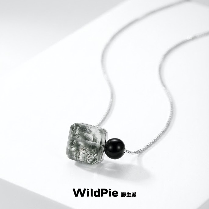 S925银细项链天然绿幽灵黑曜石方糖吊坠小众百搭显白气质女锁骨链