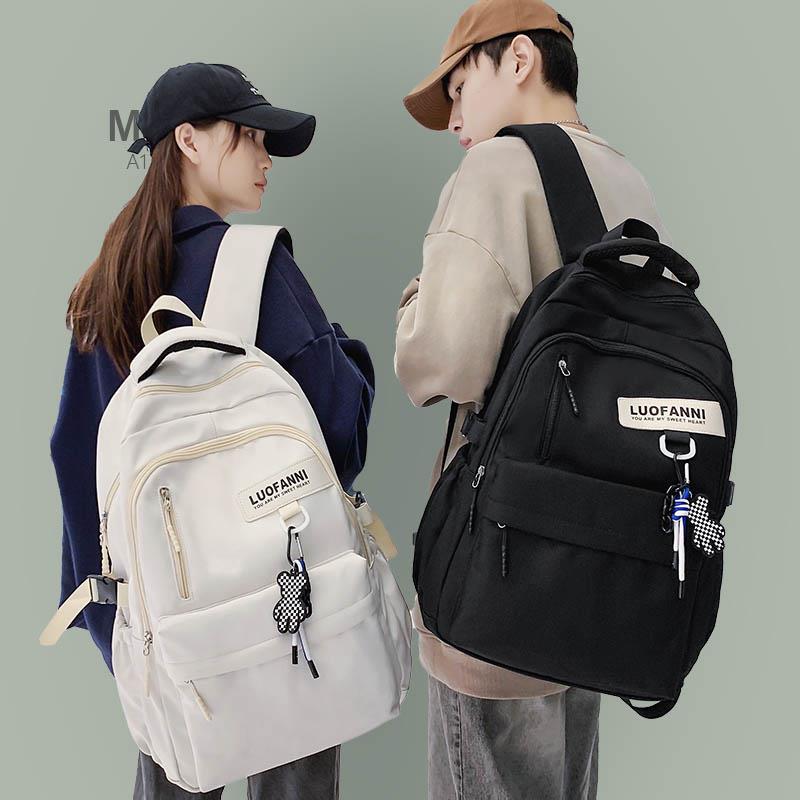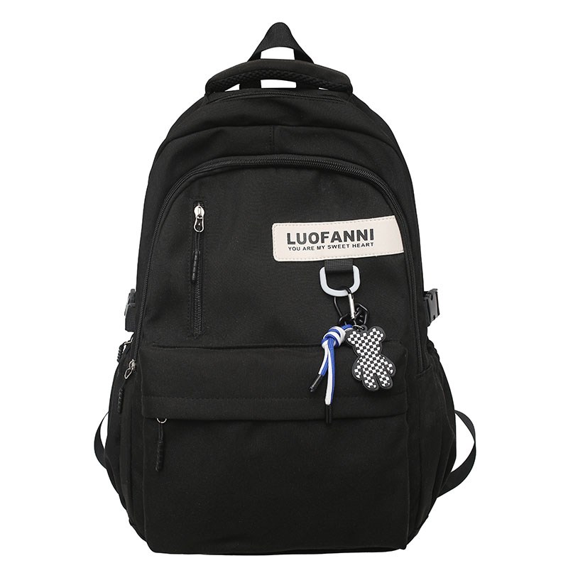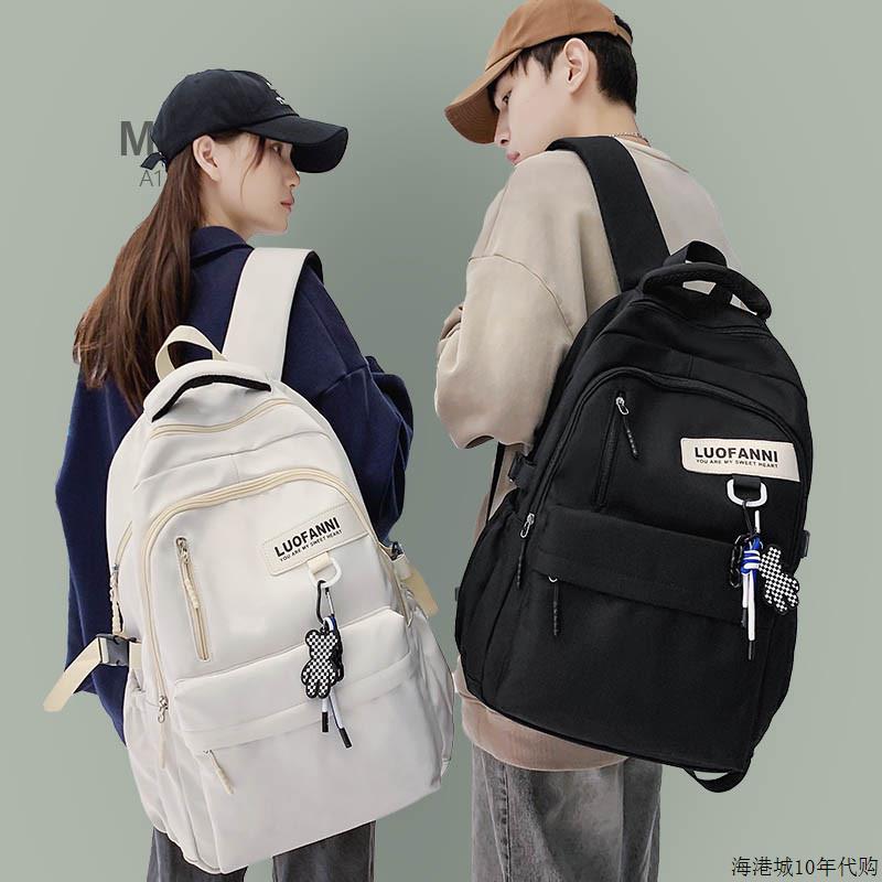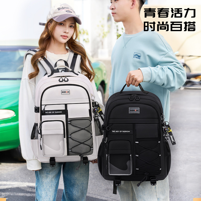 日系潮牌黑色书包男女大学生高中学生背包初中生大容量减负双肩包