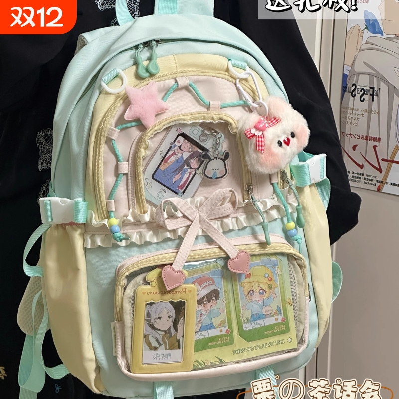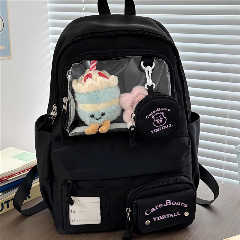 痛包书包女生初中生高中学生双肩包日系高颜值黑色背包透明层娃包