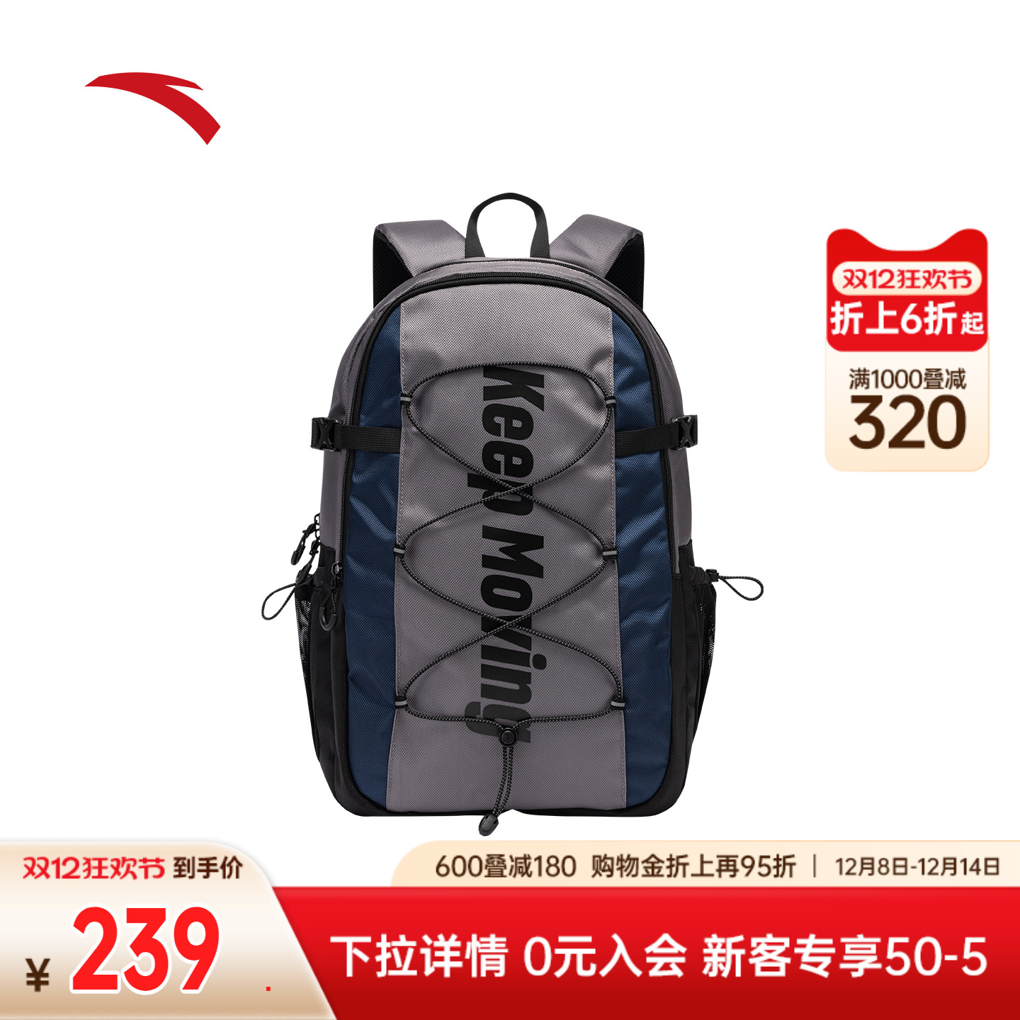 安踏双肩包2025新款男女黑色旅行运动包电脑双肩背包初中学生书包
