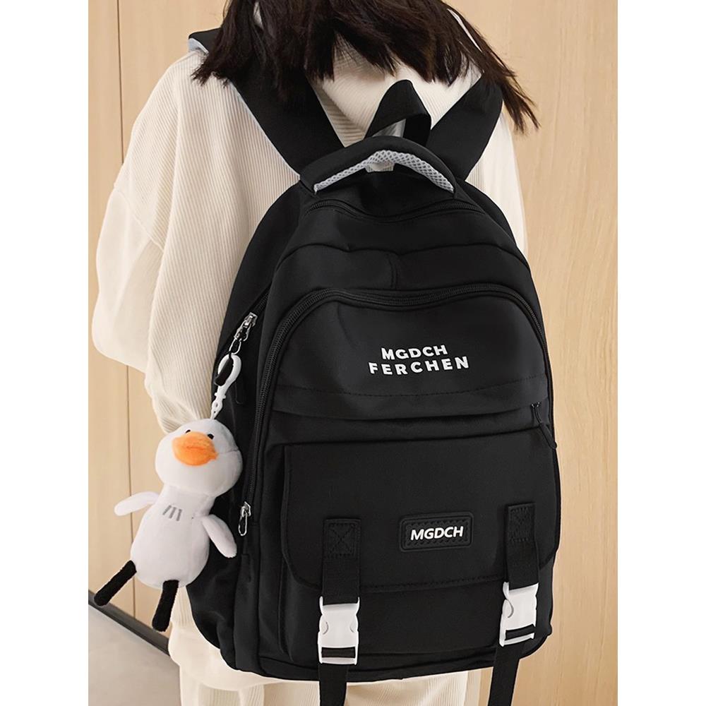 书包初中女生黑色高颜值日系痛包大容量中学生双肩包耐脏轻便背包