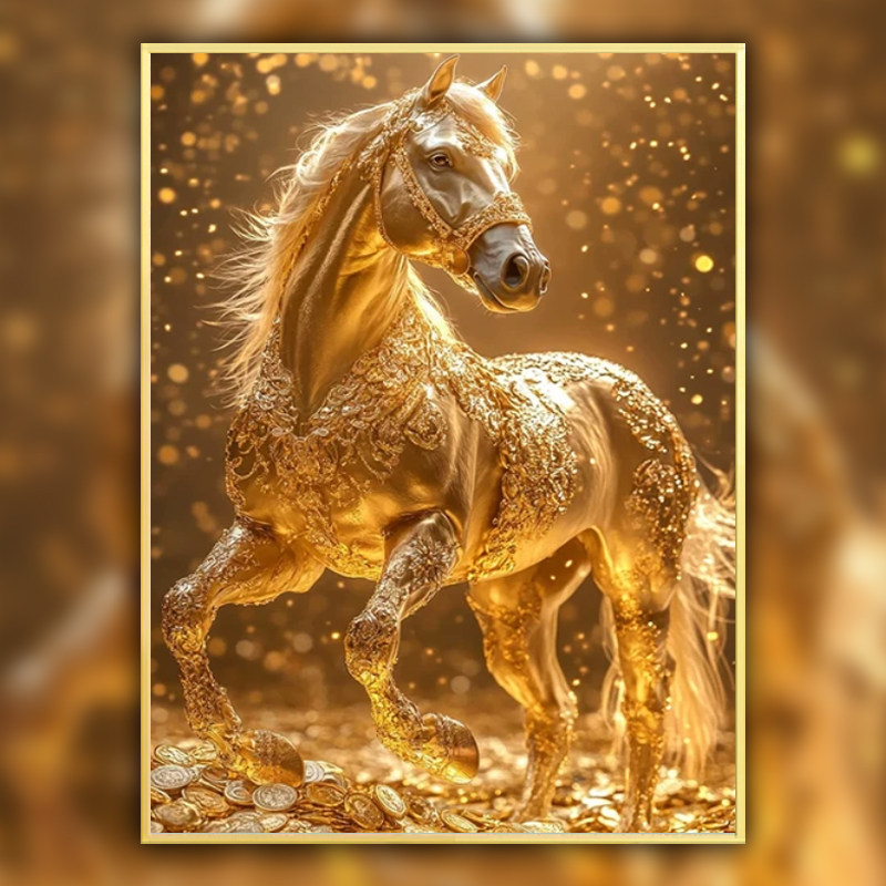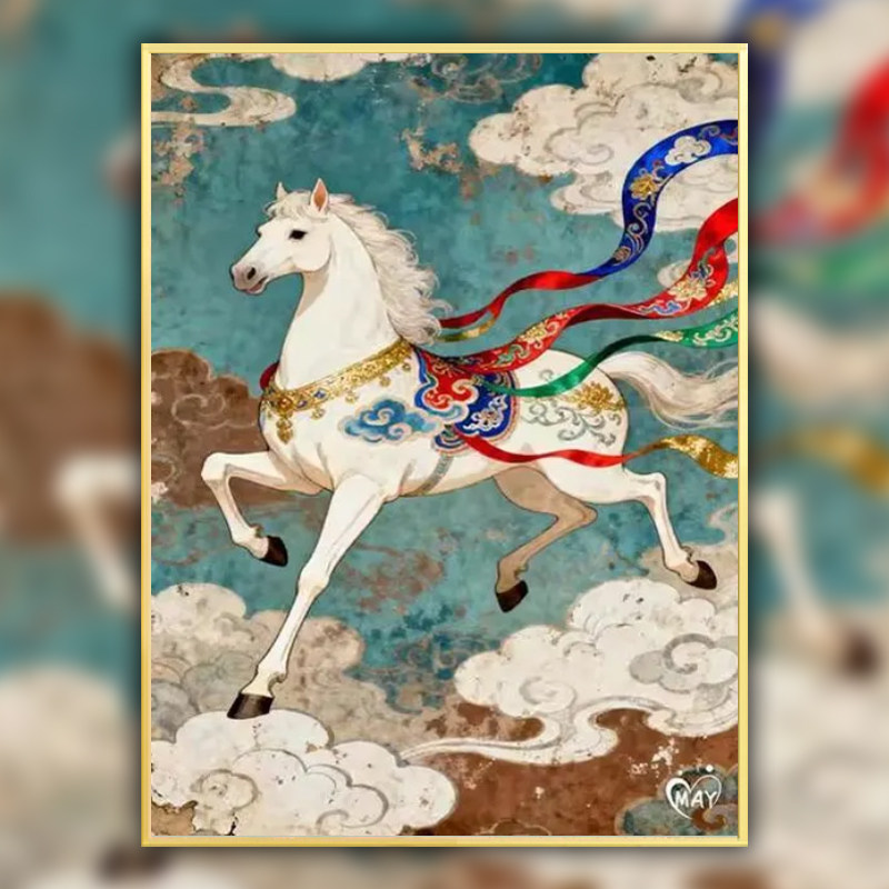 繁花骏马带框钻石画2026新款马到成功十字绣满钻马年国风水钻贴画