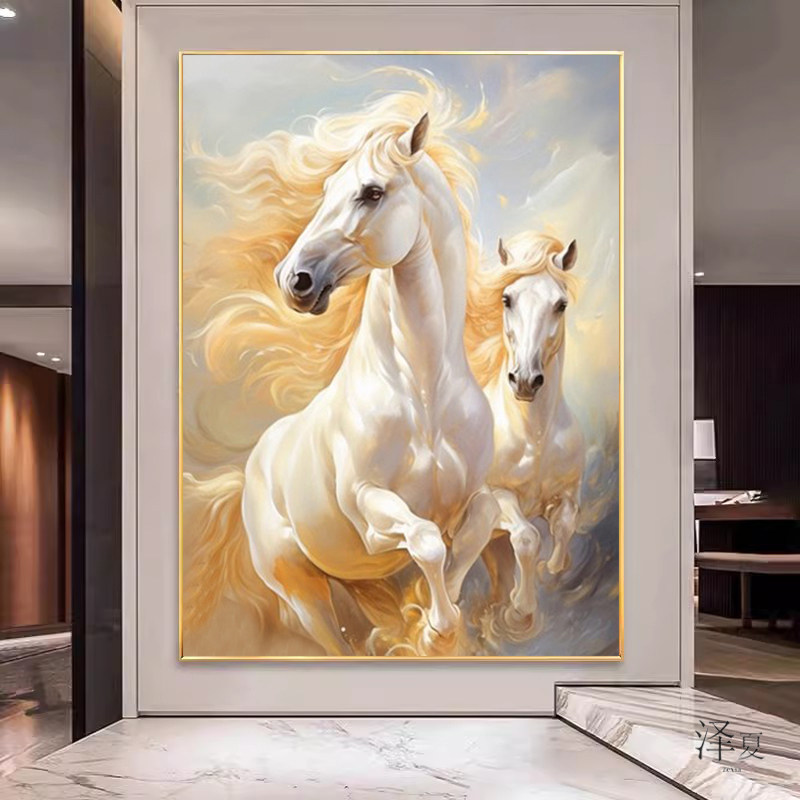 5d钻石画玄关马到成功满钻新款贴钻十字绣钻石绣2026客厅白马轻奢