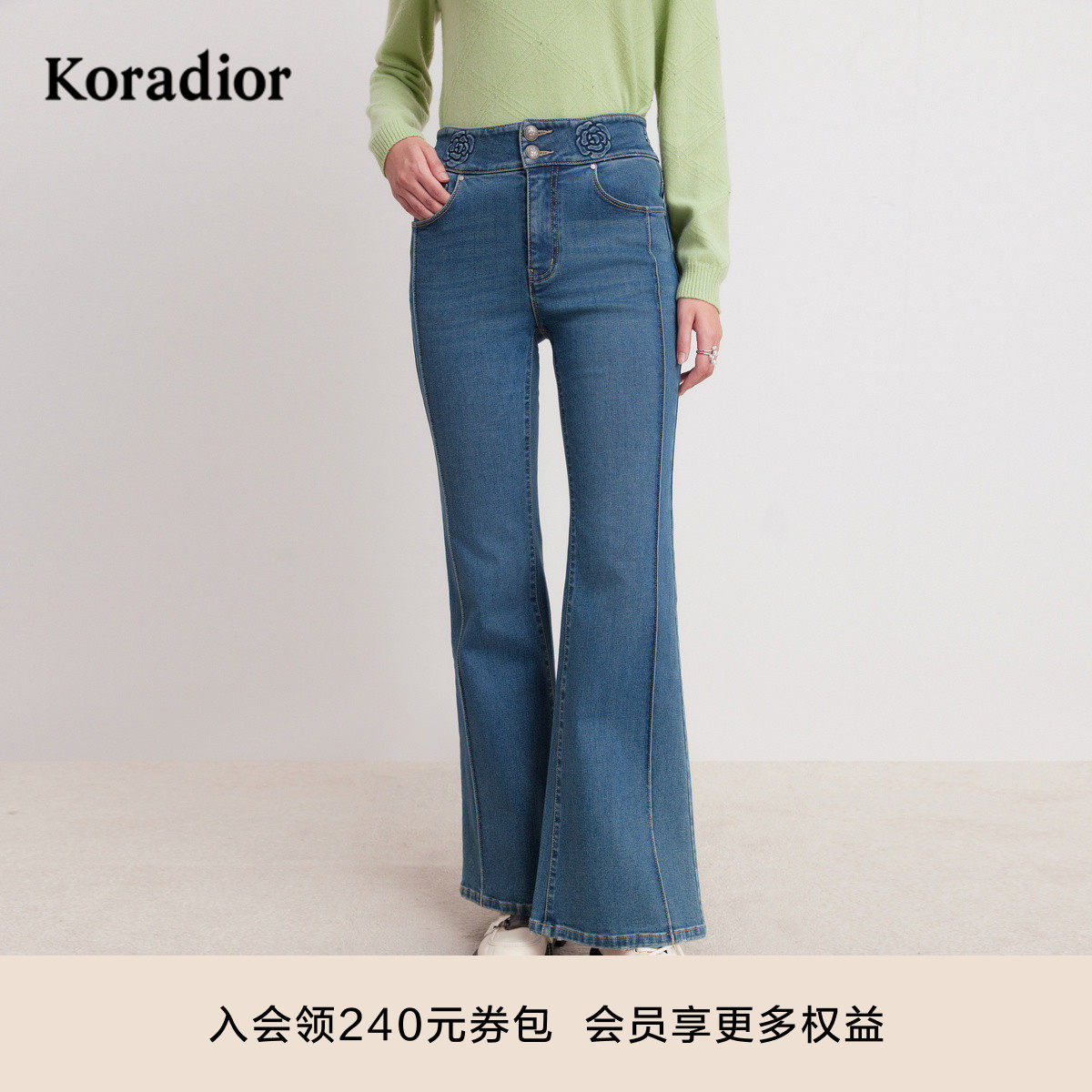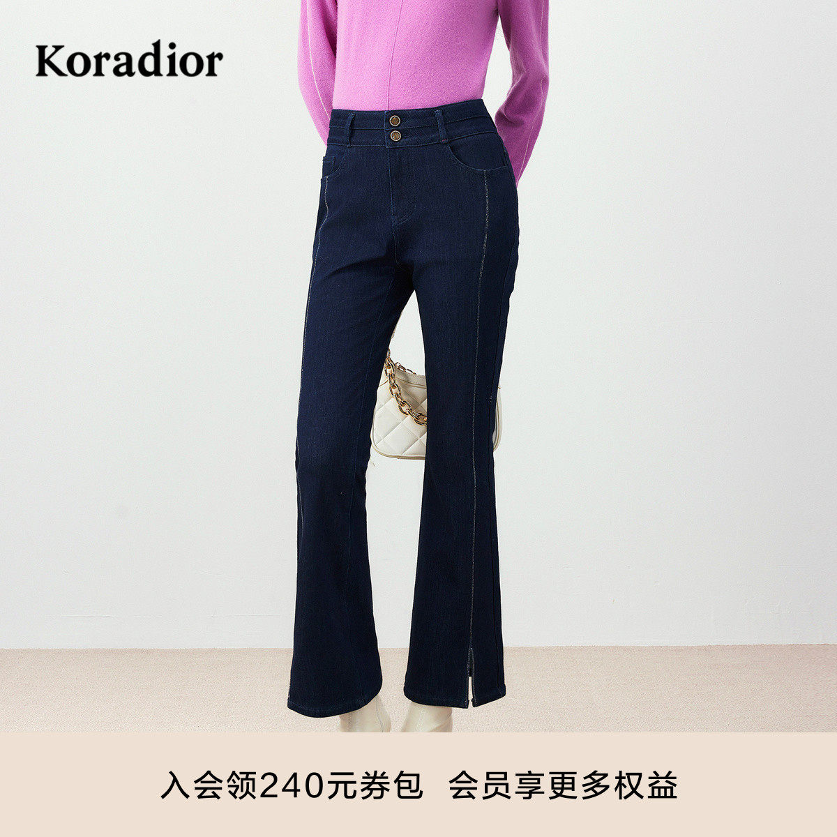 珂莱蒂尔koradior冬季款经典百搭牛仔裤女士微喇长裤时尚休闲裤子
