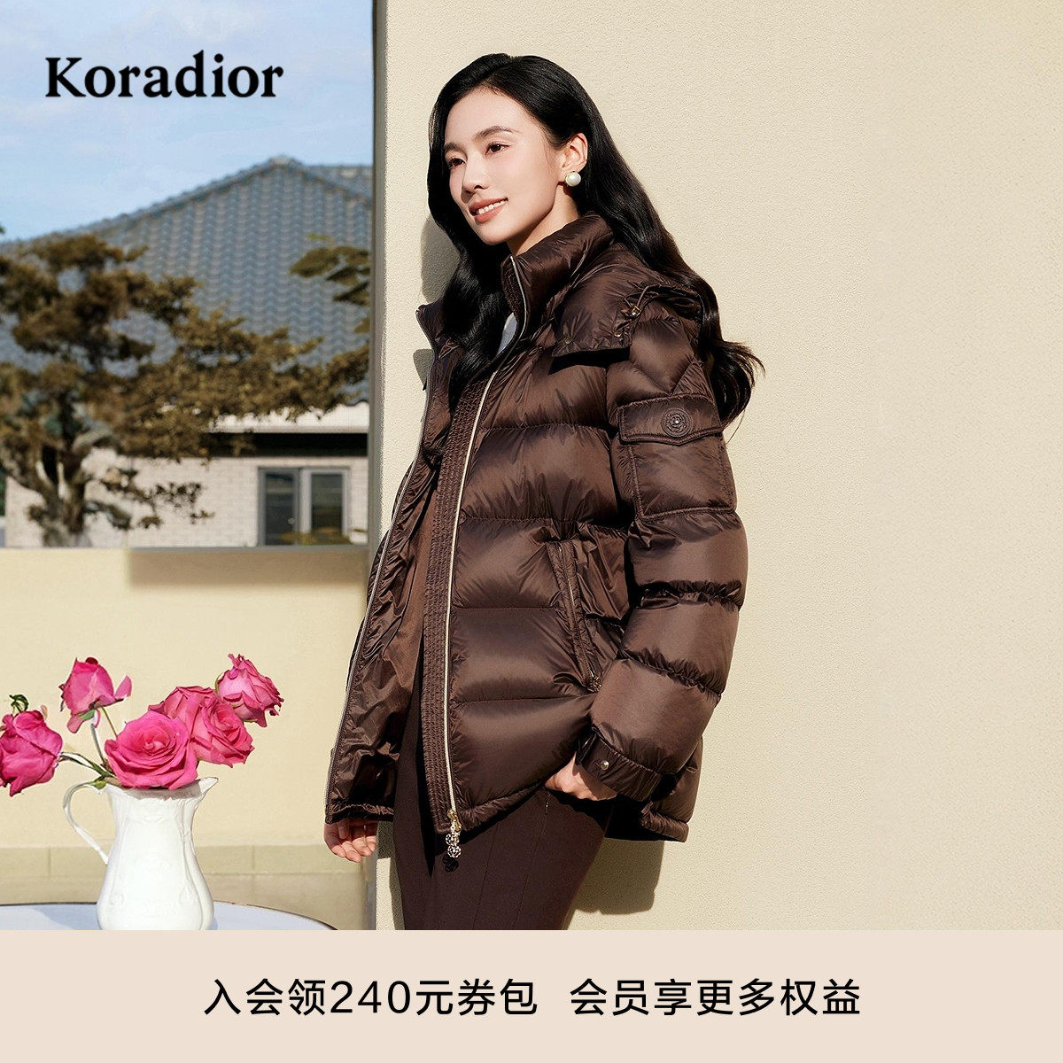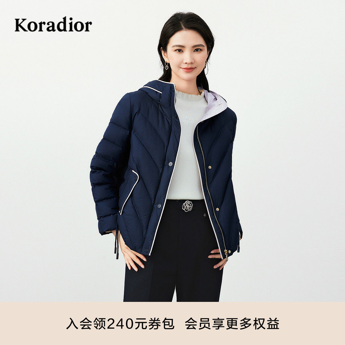 珂莱蒂尔koradior冬季款鹅绒羽绒服通勤保暖连帽外套女装