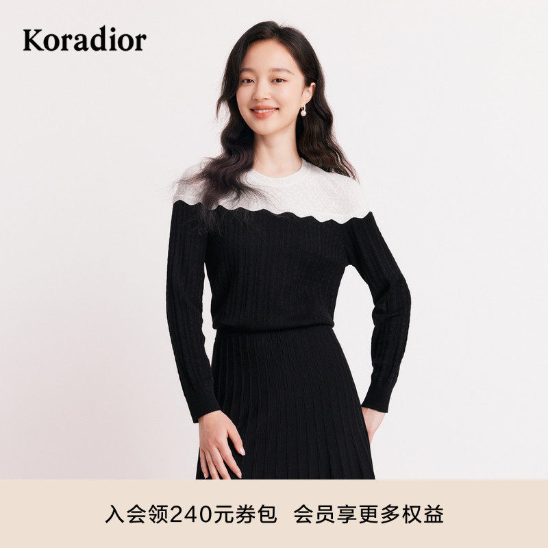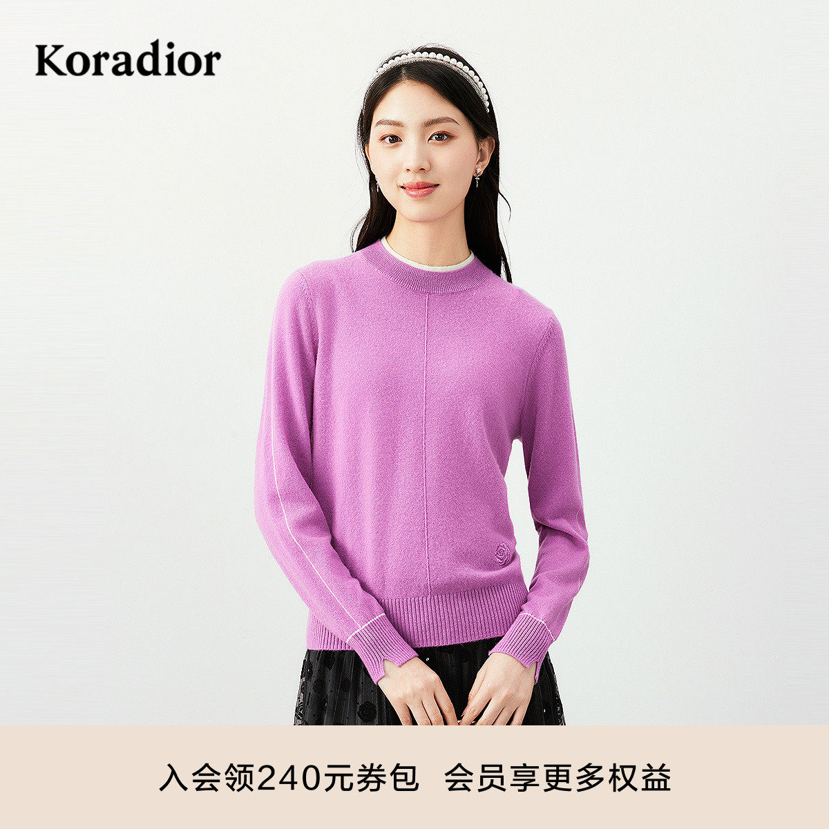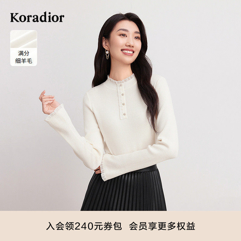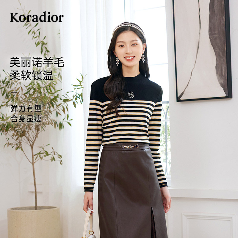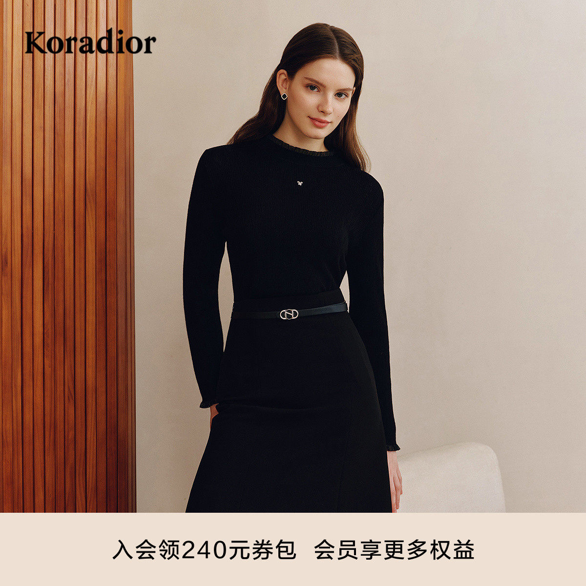 【100绵羊毛】koradior珂莱蒂尔秋冬通勤淑女纯色长袖针织衫