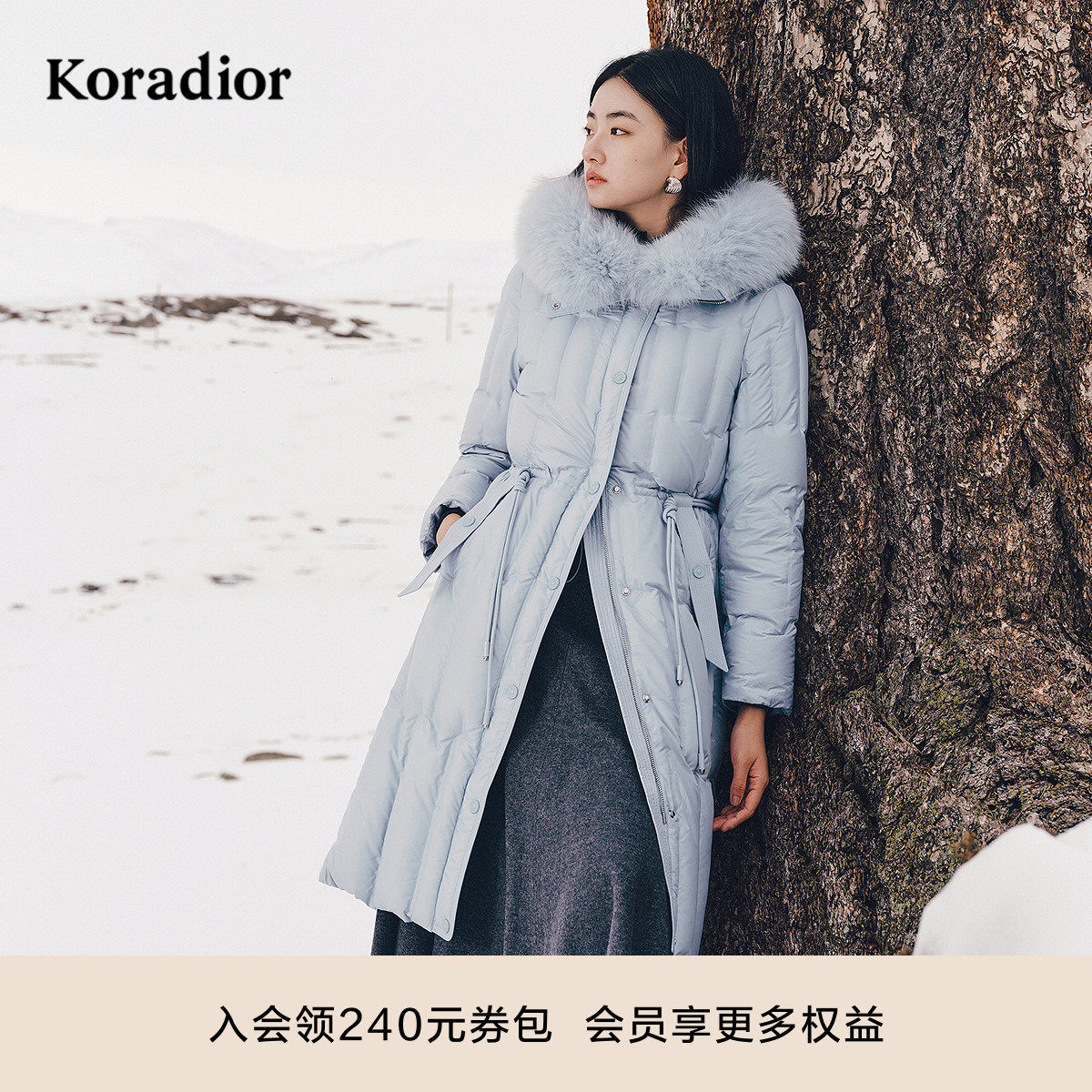 【花瓣羽绒】珂莱蒂尔2025冬新款狐狸毛领束带沙漏收腰过膝羽绒服