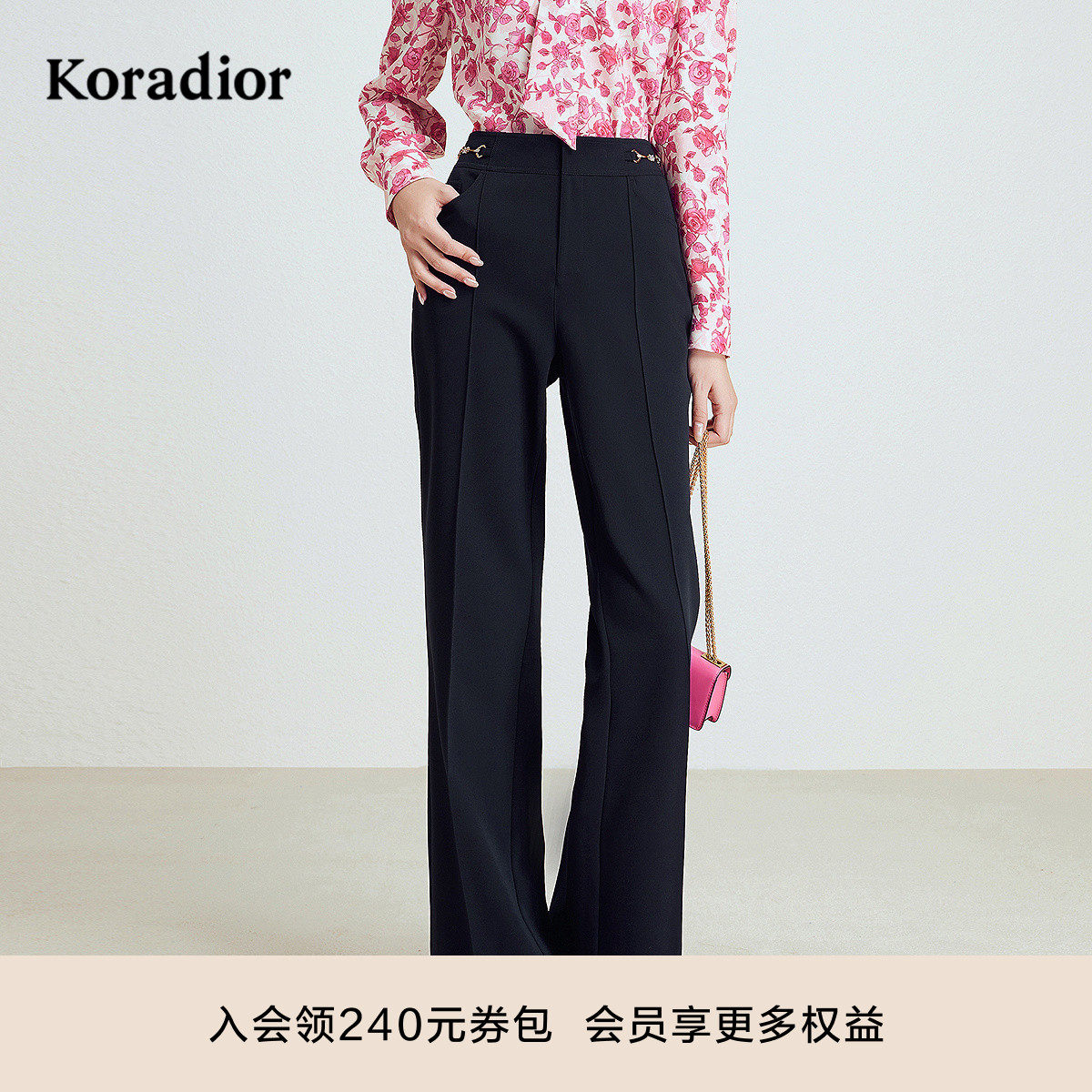 珂莱蒂尔koradior秋季款简约阔腿西装裤百搭修身微喇长裤女