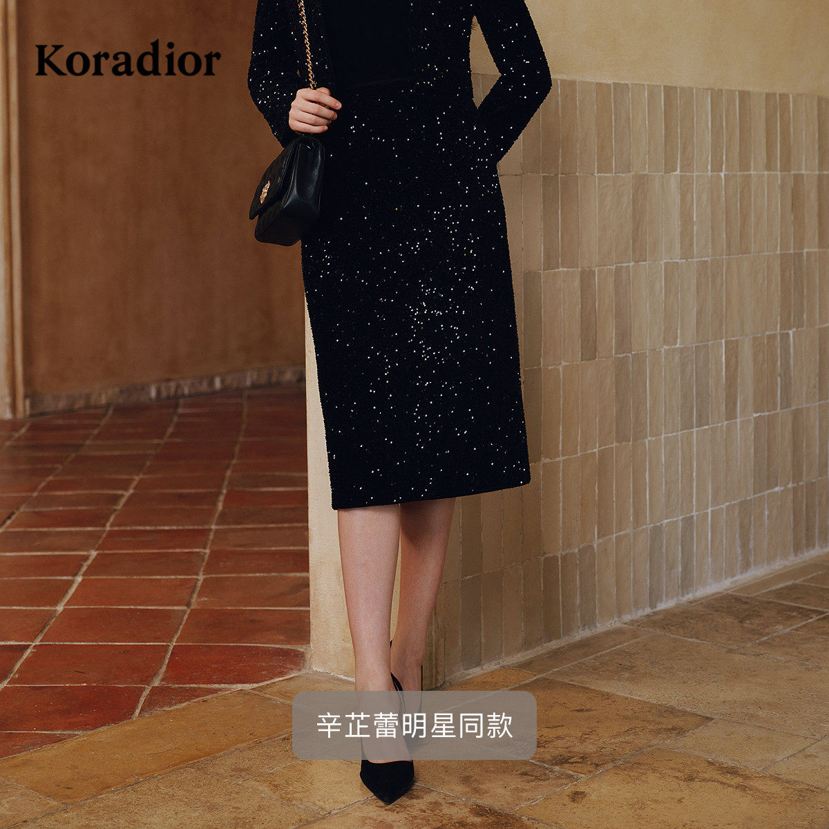【辛芷蕾同款】珂莱蒂尔25新亮片修宴会可穿小黑裙修身直筒半裙