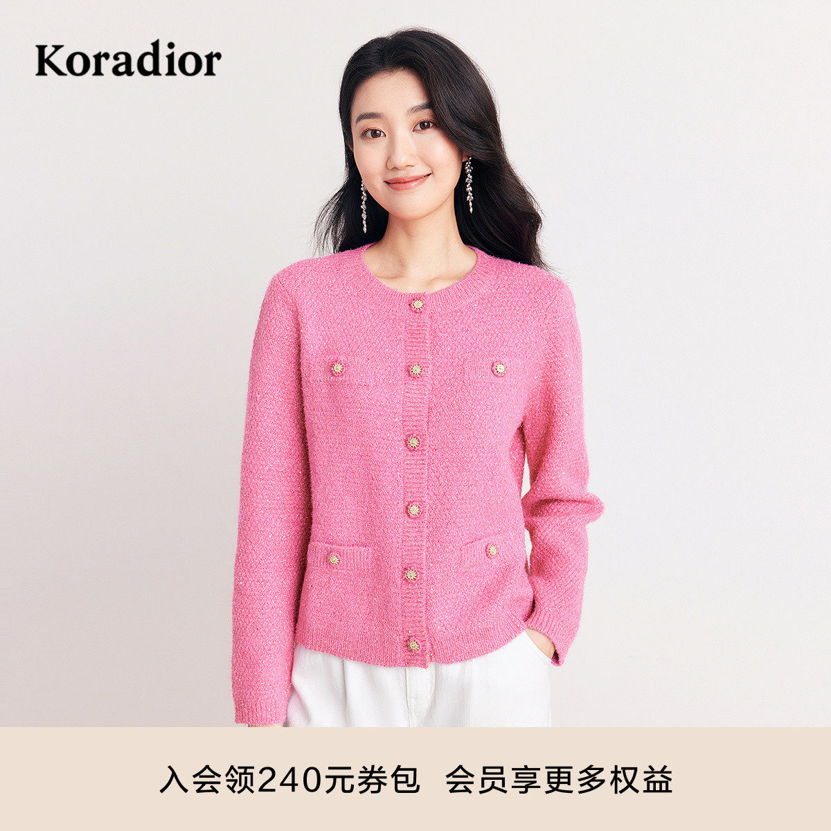 珂莱蒂尔2025年冬新款闪葱绵羊毛针织开衫女保暖红色系香风外套