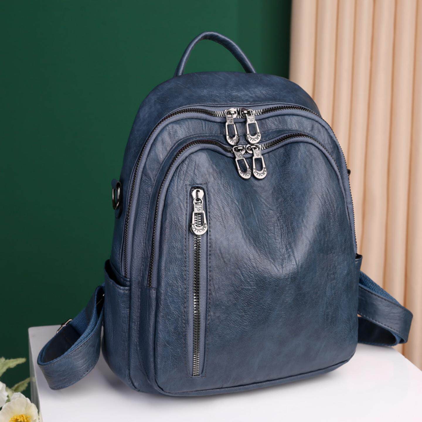 - 背包 女 双肩包 真皮 百搭