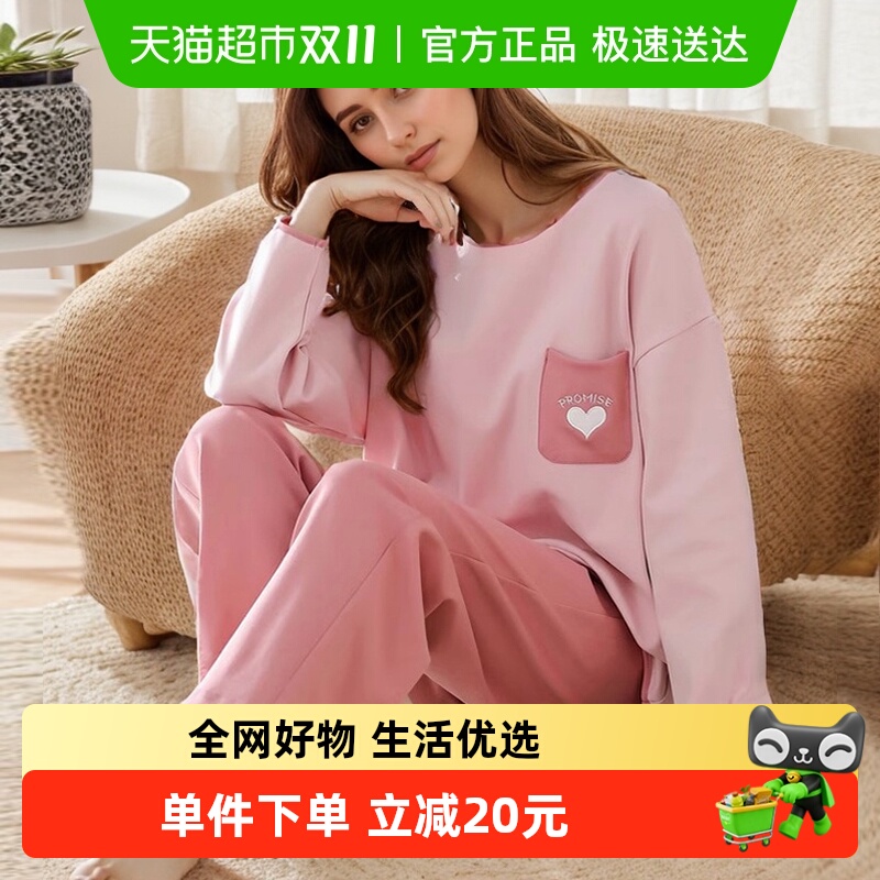 啄木鸟纯棉两件套夏季睡衣女短袖七分裤春秋冬天薄款可外穿家居服