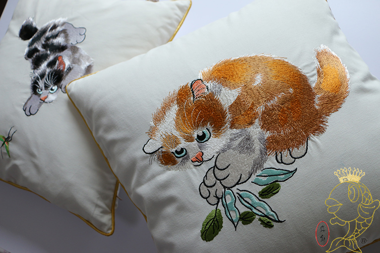 现代纯棉刺绣爱宠黑白猫狗老虎卡通生肖可爱沙发靠垫抱枕车载包邮