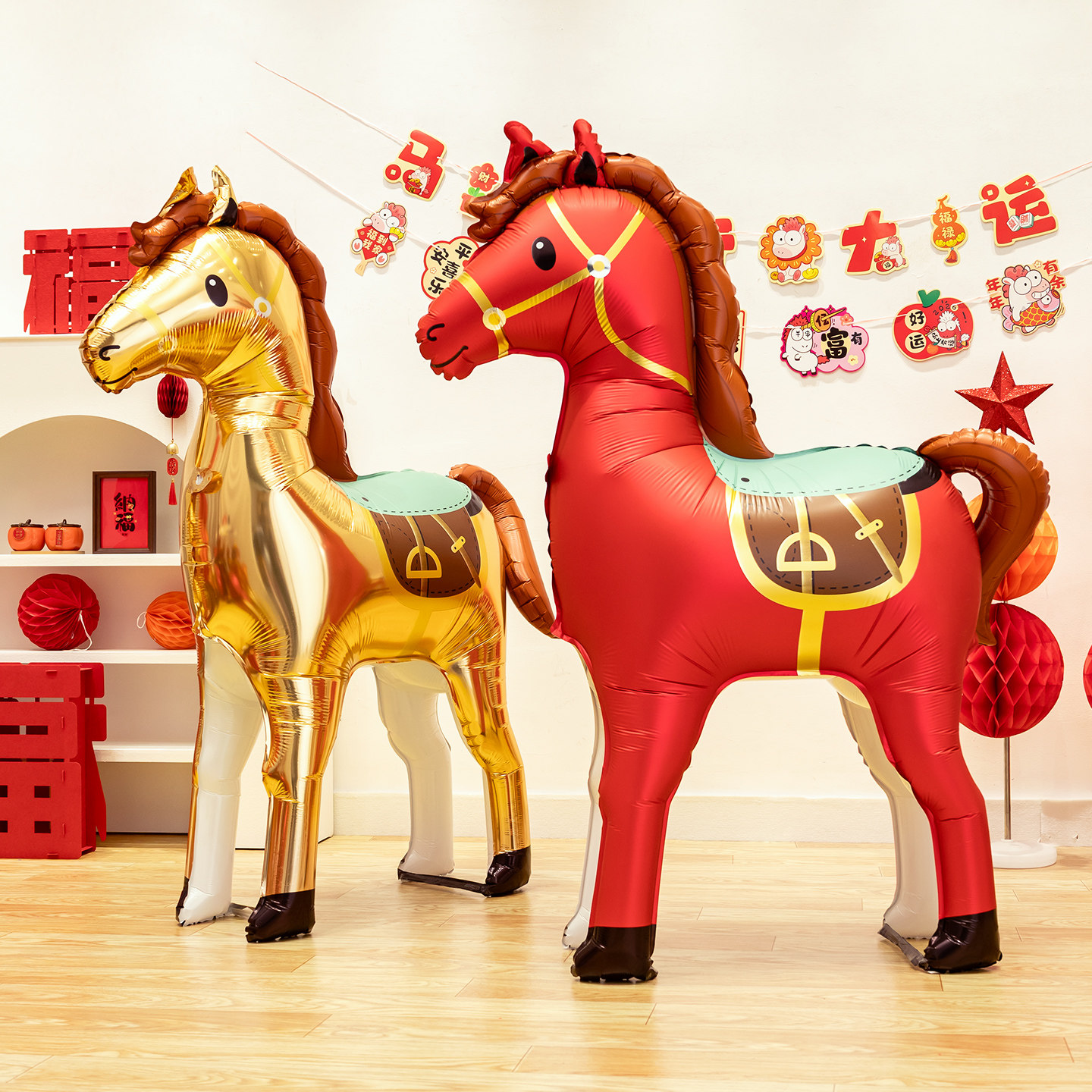 新年装饰可爱卡通立体马红色气球店铺幼儿园春节教室氛围道具布置