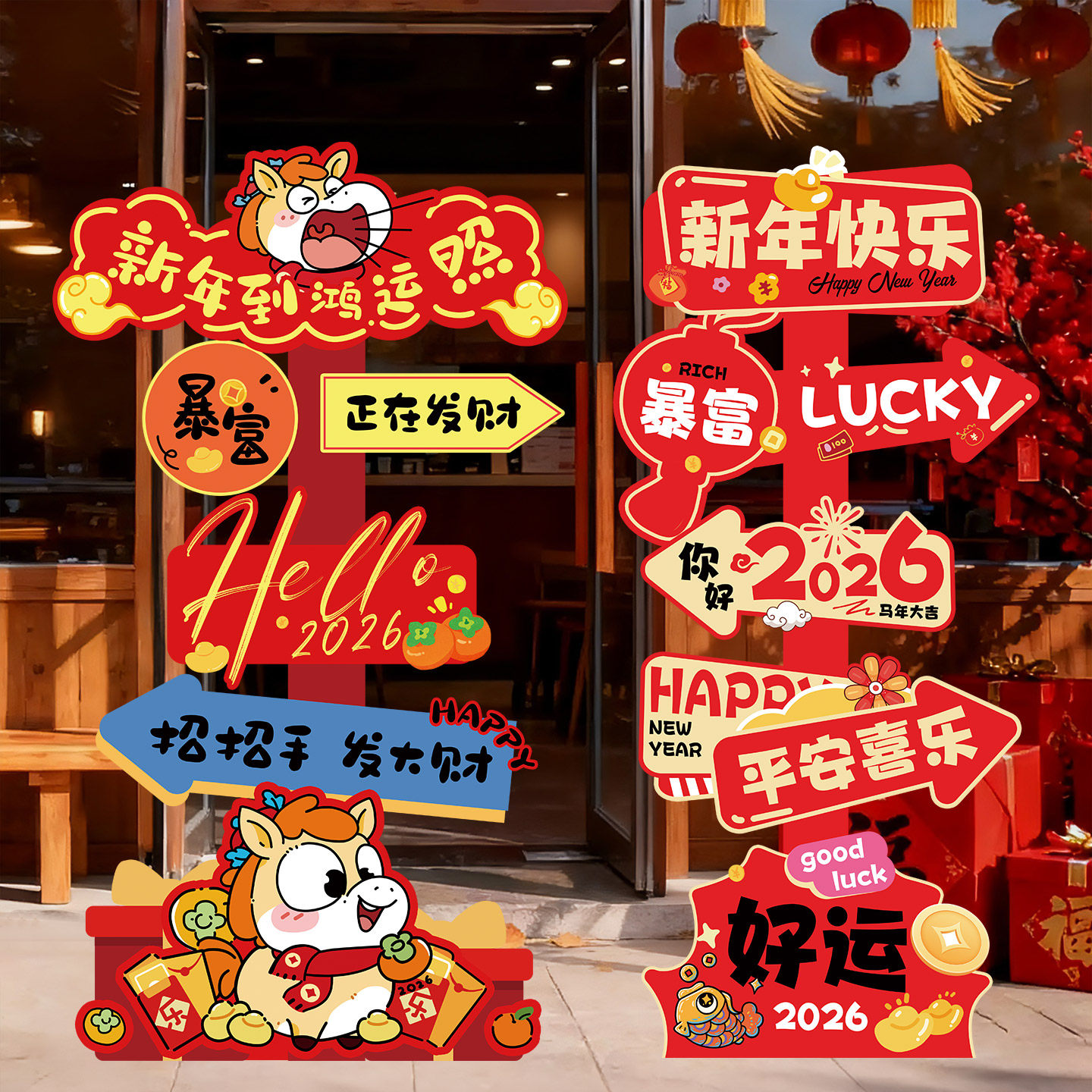 2026新年装饰路引指示牌迎宾牌kt板摆件马年氛围感拍照布置幼儿园