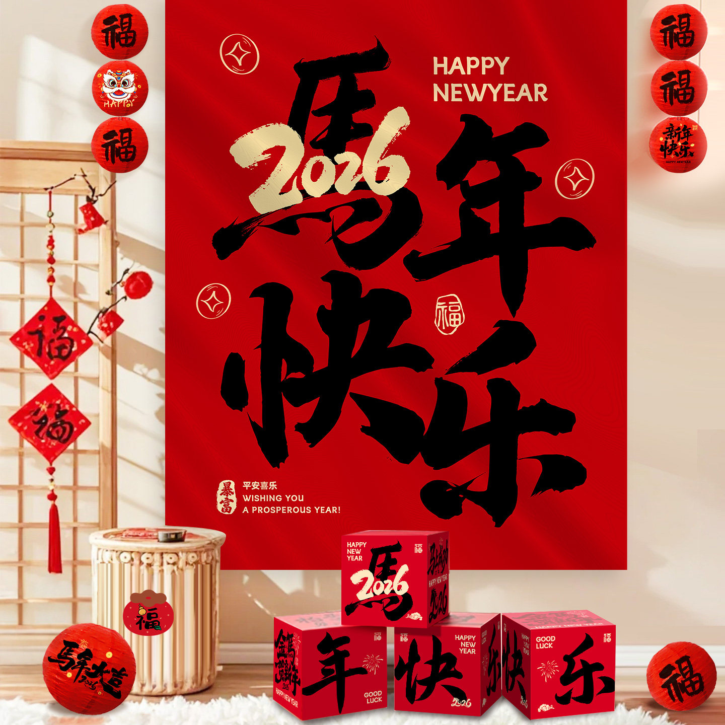 2026新年装饰品挂布摆件马年过年春节幼儿园氛围场景布置年会活动