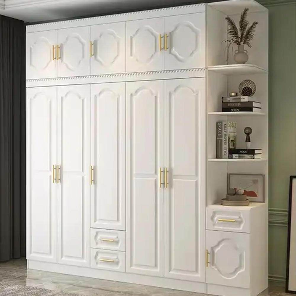 欧式衣橱衣柜简约现代带梳妆台卧室衣帽房储存柜转角柜白色玻璃门