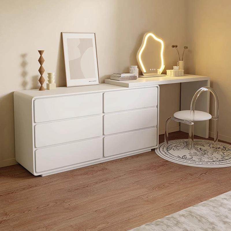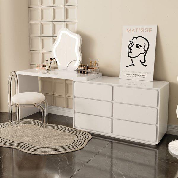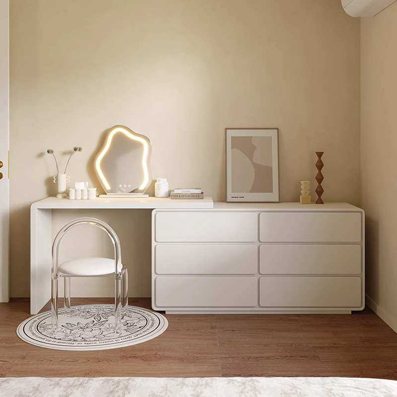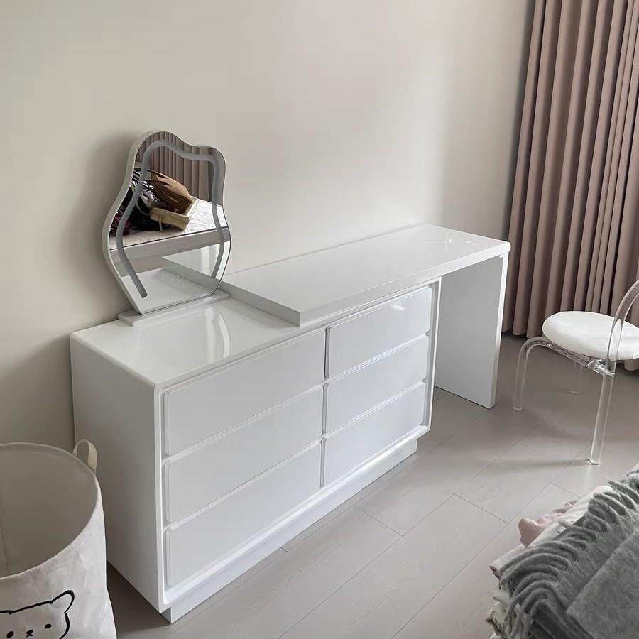 极简卧室床尾多功能可伸缩斗柜梳妆台一体奶油白色化妆桌现代简约