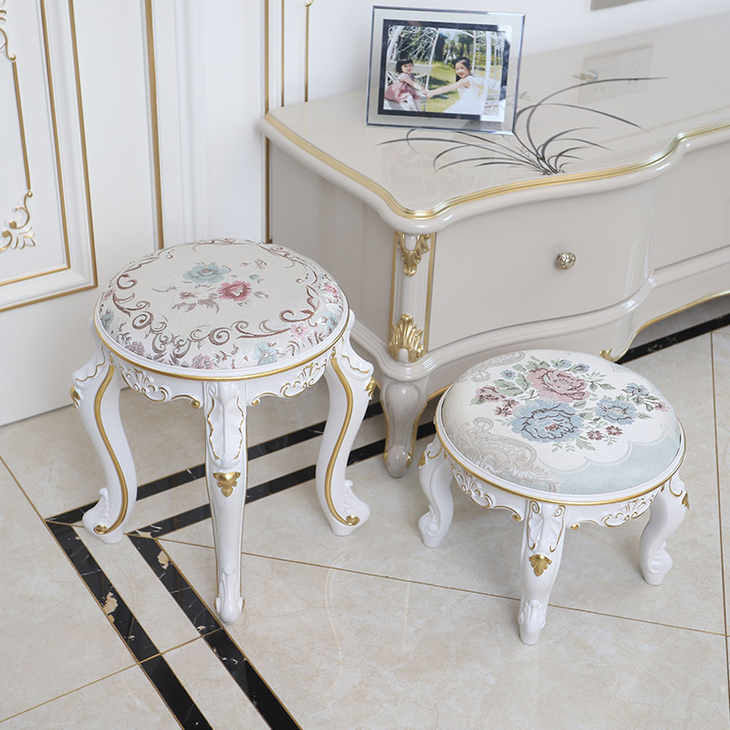 K8欧式化妆凳卧室梳妆台凳子白色现代简约美甲凳家用换鞋凳仿实木