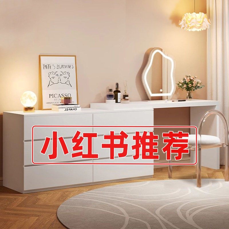 新款2025小户型梳妆台卧室现代简约中古奶油风斗柜一体化妆桌白色
