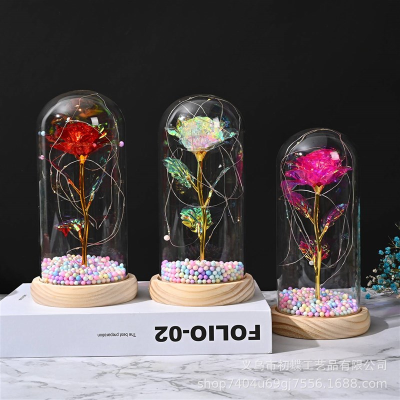极速永生花玻璃罩玫瑰花发光金箔玫瑰花I耶诞节情人节创意礼物货