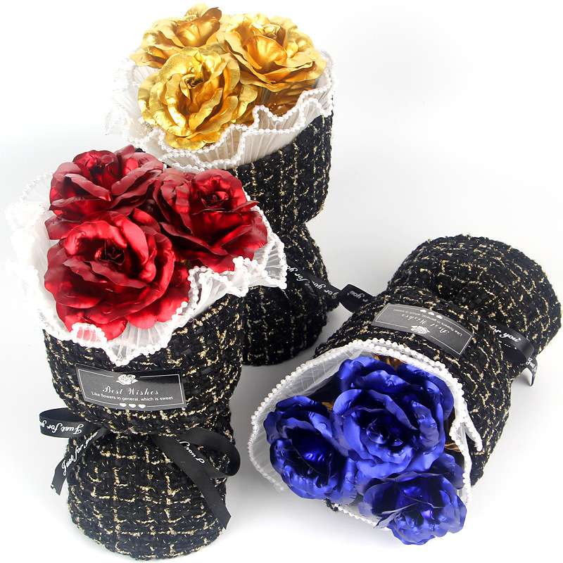 仿真金箔玫瑰花束彩金玫瑰花水晶玫瑰花摆件彩色玫瑰七夕情人节礼