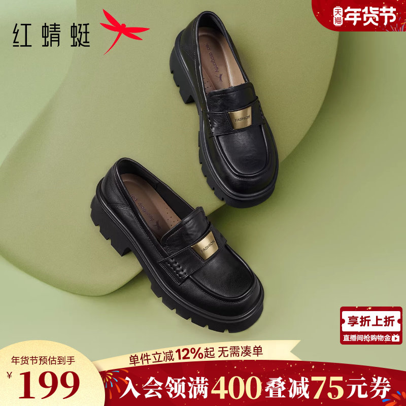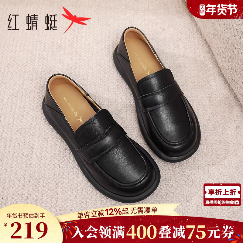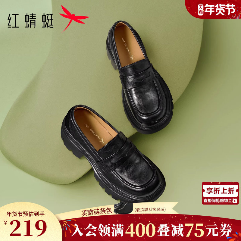 红蜻蜓厚底乐福鞋女2026春季新款女鞋巨好看黑色单鞋英伦风小皮鞋